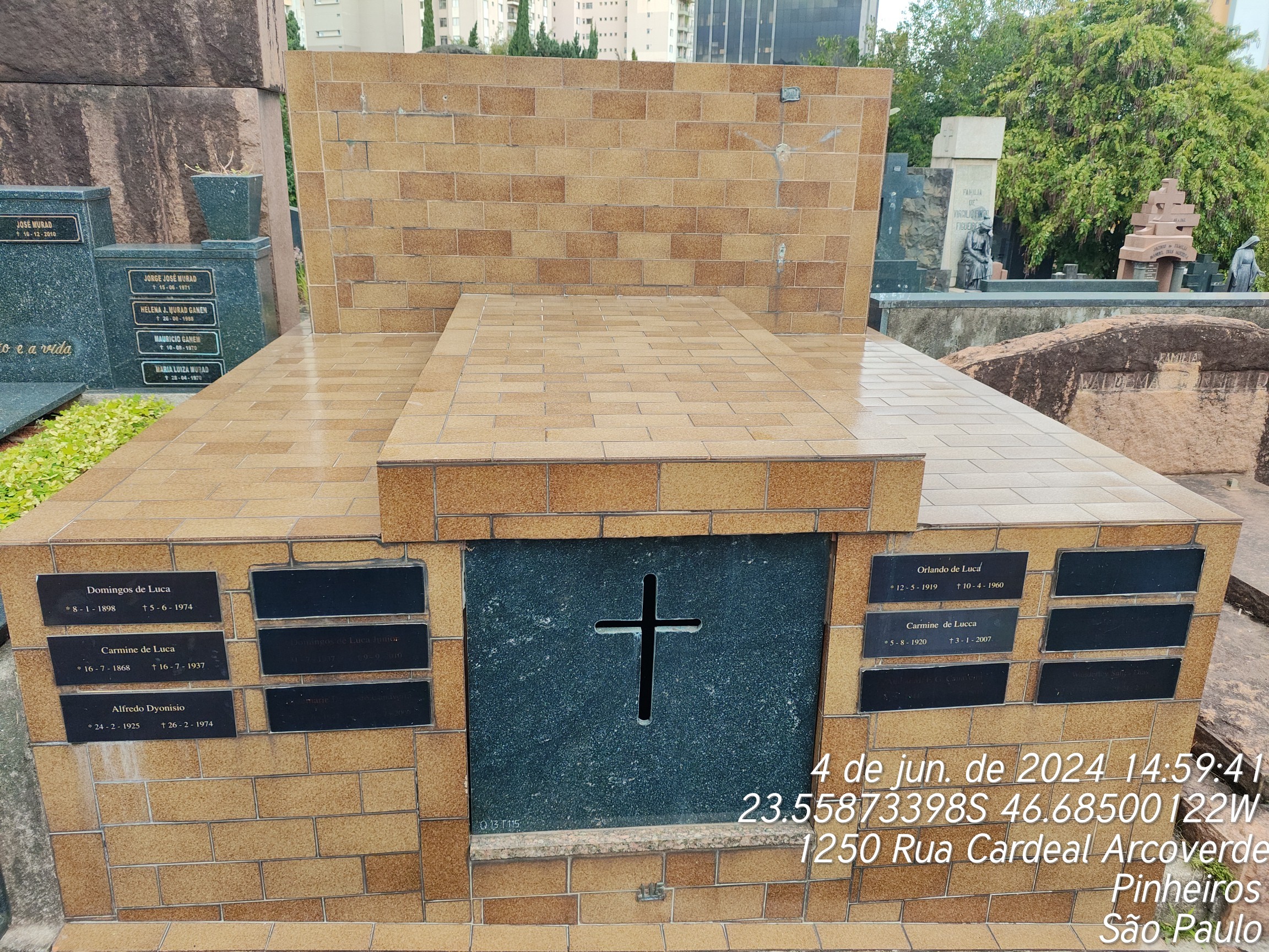 CARMINE DE LUCCA - 03/01/2007, ROSEMARIE DYONISIO CANAVEIRA - 20/07/2000, DIRCE DE LUCCA - 24/11/2004, WANDERLEI SALES DIAS - 24/02/1978, MALVINA FREZZA LAVIERA - 08/06/1958, ROSINHA EVANGELISTA - 16/06/1975, ANTONIO DE LUCA - 23/09/1970, ANTONIO LARIVERA - 21/06/1964, NICOLAU LARIVERA - 23/12/1962, CHELELLI VITORIA DE LUCA - 07/12/1964, ALFREDO DYONISIO - 26/02/1974, ORLANDO DE LUCCA - 10/04/1960, DOMINGOS DE LUCCA - 05/06/1974, CARMINE DE LUCA - 16/07/1937, NATI MORTO - 16/02/1975