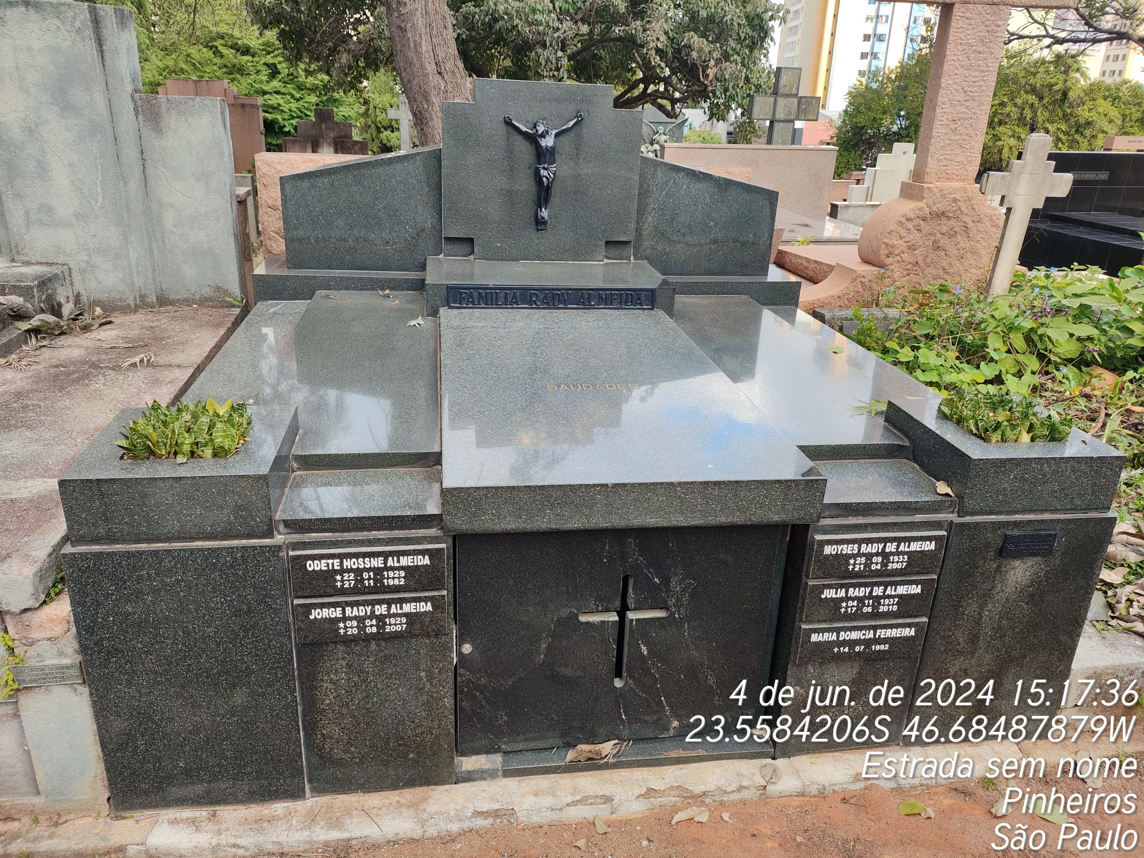 MOYSES RADY DE ALMEIDA - 21/04/2007, DOMICIA FERREIRA XAVIER - 14/07/1992, JORGE RADY DE ALMEIDA - 20/08/2007, CARLOTA PINTO FERREIRA LOPES - 25/04/1966, CLOTILDE DA SILVA PINTO - 04/01/1981, FRANCISCO FERREIRA LOPES - 12/05/1936