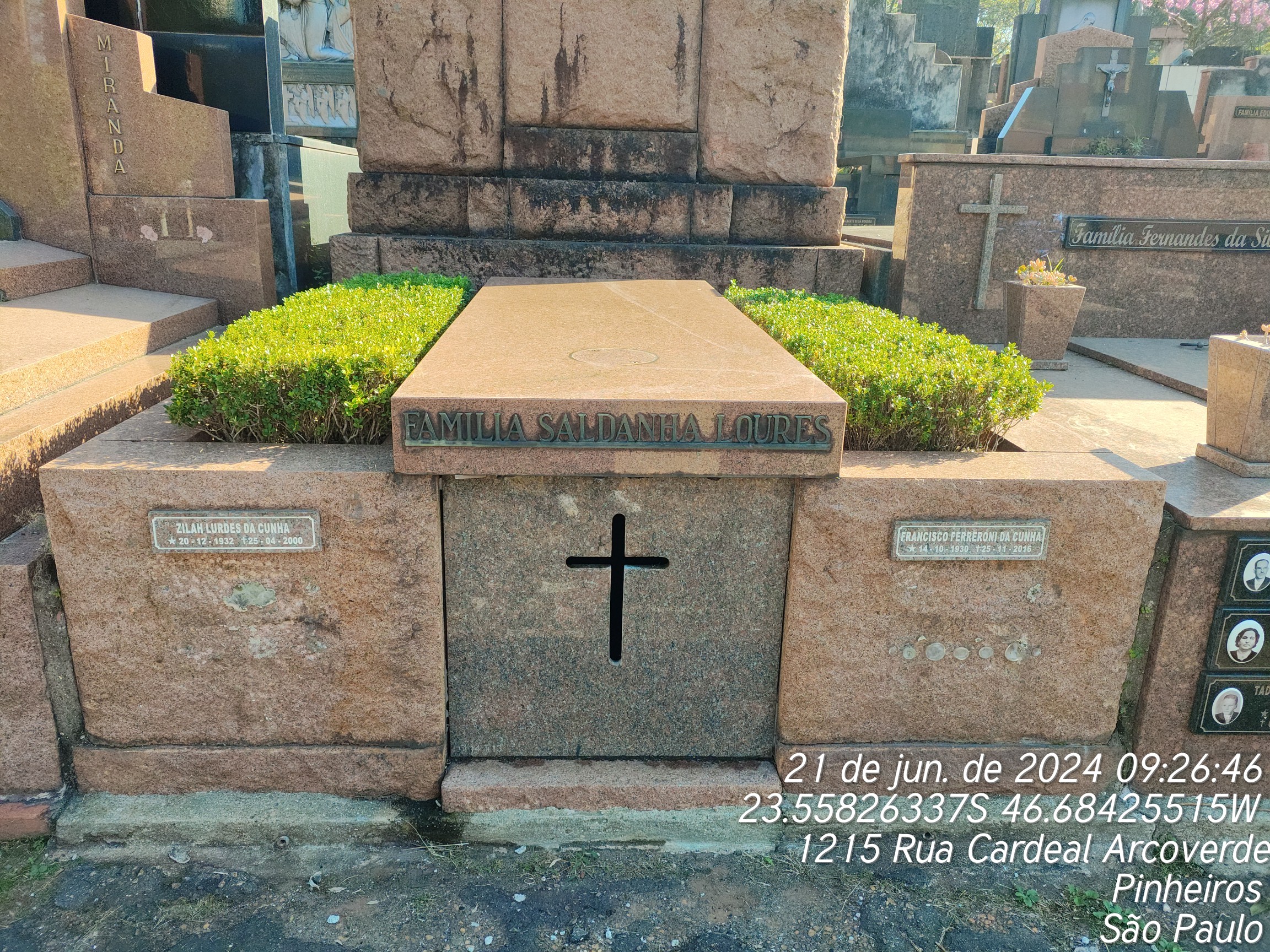 ZILAH LOURDES DA CUNHA - 25/04/2002, JOAO FRANCISCO SALDANHA LOURES - 22/09/1942, ANTONIO SALGADO LOURES - 01/11/1951, INAH RIBEIRO LAURES - 23/02/1963, FERNANDO ANTONIO MACUCO - 23/03/1946, NATI MORTO - 16/06/1968, LUIZA SALDANHA - 21/03/1960