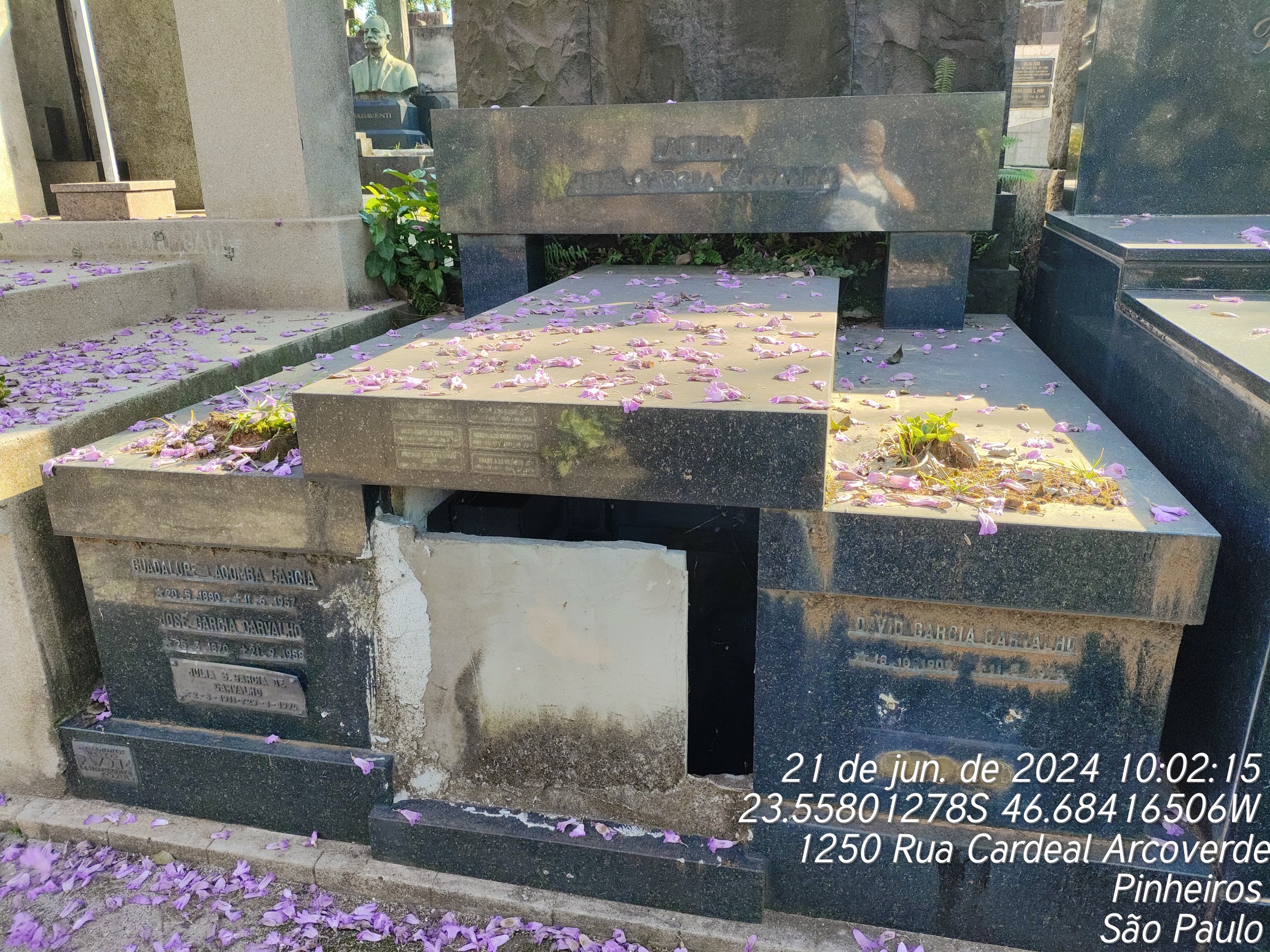 NEYDE GARCIA DE CARVALHO - 11/01/2008, NUNCIATA CAMPANA GARCIA - 03/02/1996, JOSE GARCIA DE CARVALHO - 21/09/1958, JACINTHO SOARES AMBROSIO - 25/09/1999, NOEMI GARCIA CARVALHO - 26/02/2008, GUEDALUPE COMBA GARCIA - 11/06/1957, AFFONSO GIL GARCIA DE CARVALHO - 08/11/1982, JULIA BUITANE GARCIA CARVALHO - 30/01/1970, DAVID GARCIA CARVALHO - 11/03/1973