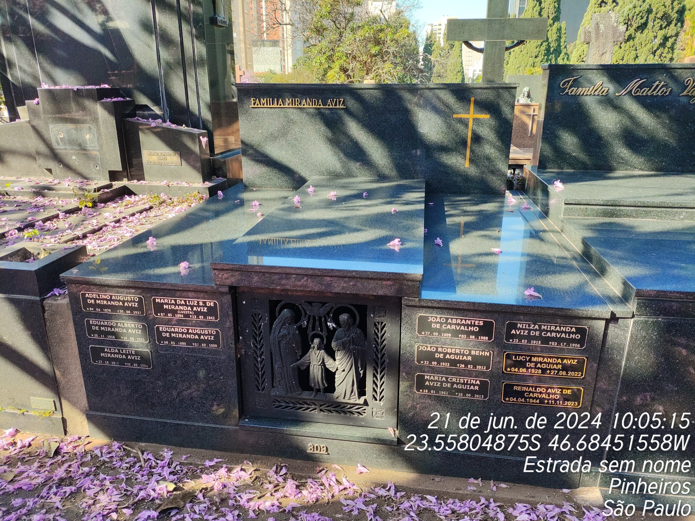 LUCY MIRANDA AVIZ DE AGUIAR - 27/08/2022, JOAO ROBERTO BEHN DE AGUIAR - 26/02/2012, JOAO ABRANTES DE CARVALHO - 03/08/1988, MARIA CRISTINA ANIZ DE AGUIAR - 26/06/2013, FERNANDO SEILER ROCHA - 09/12/1940, EDUARDO AUGUSTO MIRANDA AVIZ - 07/03/1959, NYLZA MIRANDA AVIZ DE CARVALHO - 04/07/1996, ADELINO AUGUSTO DE MIRANDA AVIZ - 26/06/1937, MARIA DA LUZ SILVA MIRANDA AVIZ - 13/03/1942