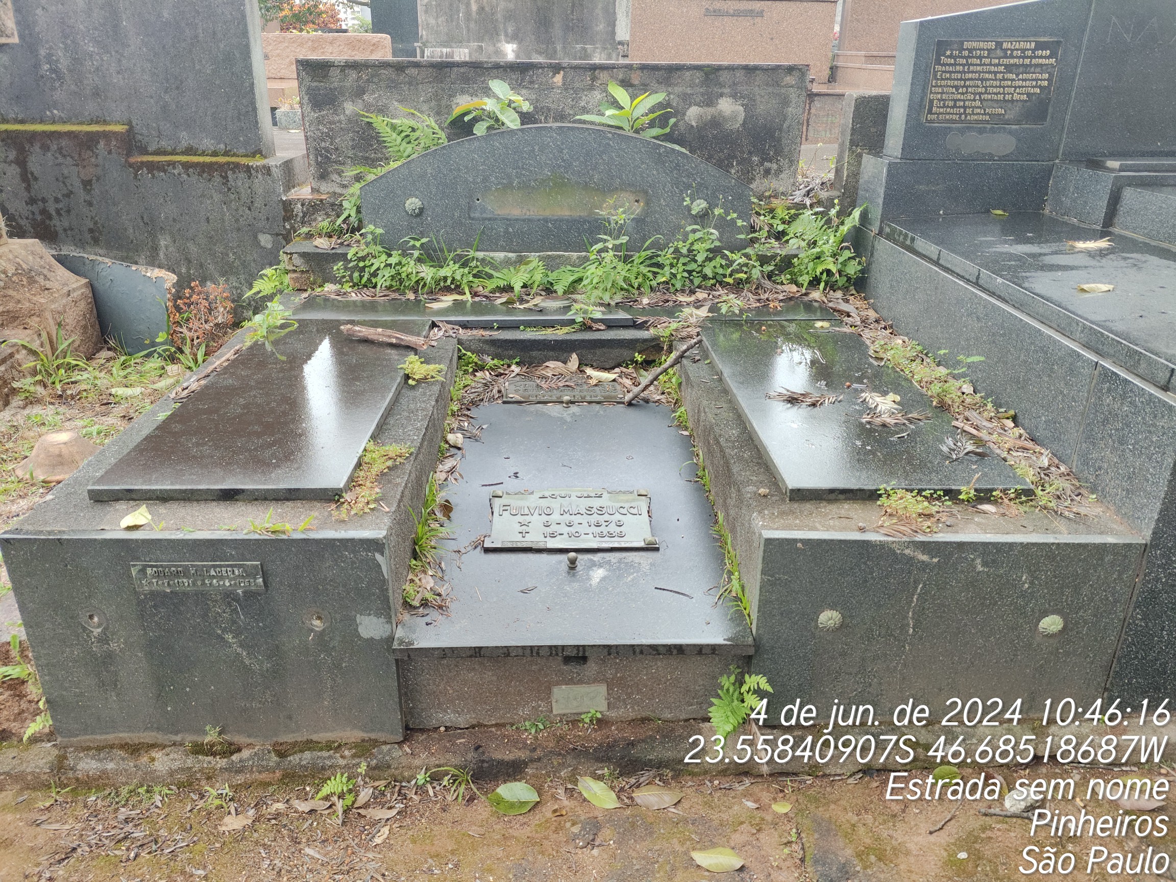 ERMELINDA GARRIDO PELAQUIM - 12/02/1994, JUVENTINA SALLES PENTEADO - 10/03/1954, NATI MORTO - 03/09/1967, WALDEMAR DEPERO LACERDA - 20/06/1975, FULVIO MASSUCCI - 15/10/1939, EGYDIA MASSUCCI - 16/09/1945, OLGA DIPERO LACERDA - 11/07/1977, EDGAR MARCONDES DE LACERDA - 05/06/1965, LUIZ D'OLINO - 01/03/1948, HEITOR MASSUCCI - 13/07/1936