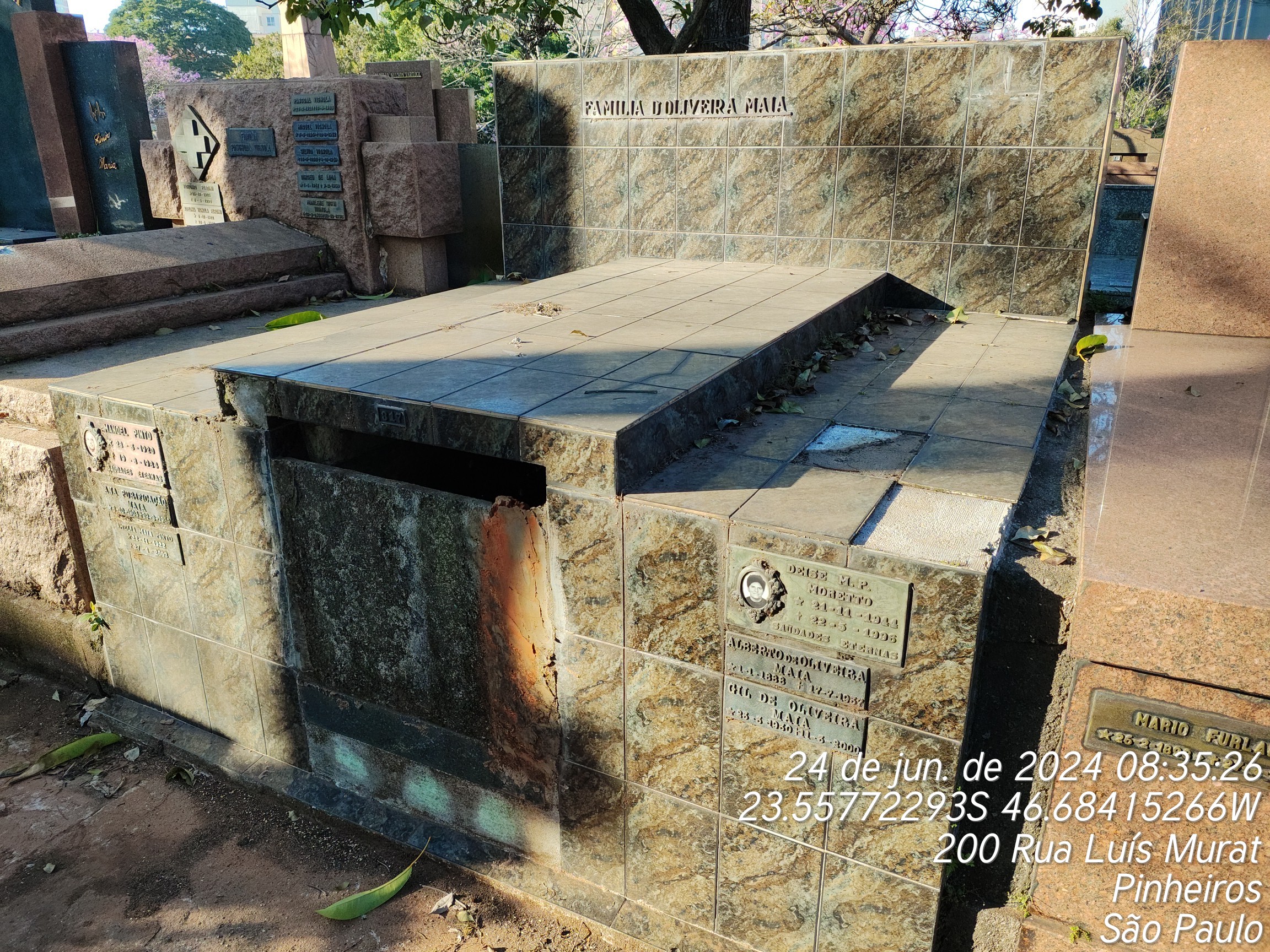 DEISE MIRIAN PINTO MARETTO - 22/05/1996, GIL DE OLIVEIRA MAIA - 11/03/2000, AMELIA MAIA PINTO - 27/04/2003, MANOEL DOS SANTOS FILHO - 11/07/1943, ALEXANDRINA DOS SANTOS - 10/09/1943, CANDIDA CARLOTA RODRIGUES - 06/11/1949, ANA MARIA DA PURIFICACAO - 28/09/1959, MANOEL PINTO - 20/08/1984, DIEGO AURELIO DUQUE - 31/12/1982, JOSE MARIA SAMPAIO - 28/10/1961, ANTONIO LAURADOR FILHO - 14/02/1970, ALBERTO DE OLIVEIRA MAIA - 17/07/1937
