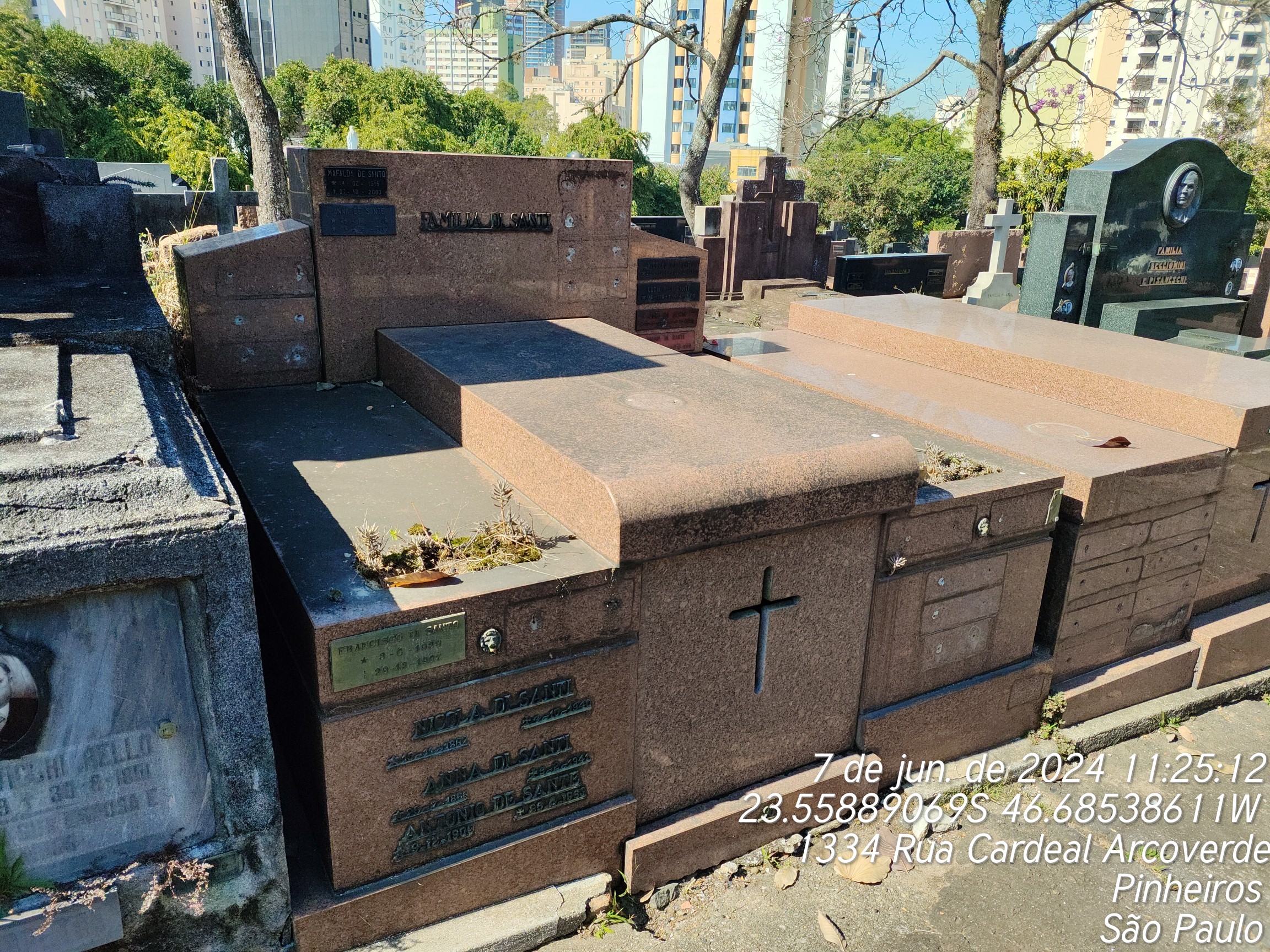 ANDRE PACINI NETO - 08/08/1993, ORLANDO DE SANTOS - 01/09/1995, IGNES DI SANTI - 04/05/1993, VICENTE DE SANTI - 25/05/2002, EMANUELA DI SANTI GONCALVES - 09/09/2003, CELESTINO DE SANT - 02/02/1999, MAFALDA DI SANTI - 07/10/2000, AMELIA FARIA BENTIGNA - 07/08/2008, YOLANDA DI SANTO COUTO - 09/02/2000, FRANCISCO DI SANTO - 29/12/1997, FRANCISCO DI SANTO - 09/08/1987, NICOLAS DA SANTO - 04/10/1940, LUCIA BENEDUCCI DI SANTI - 19/04/1975, ANTONIETA DI SANTI FELICE - 03/07/1967, BIAGIO DI SANTI - 23/06/1980, DONATO DI SANTI - 22/05/1972, JOSE DI SANTO - 14/01/1984, ARMANDO AGOSTINHO FILEI - 03/12/1943, JOAO DI SANTI - 06/08/1975, ANA DE SANTA - 14/08/2002, MARIETA DI SANTO - 31/01/1971, ANNA DI SANTI - 05/02/1941, ANTONIO DI SANTO - 25/04/1963