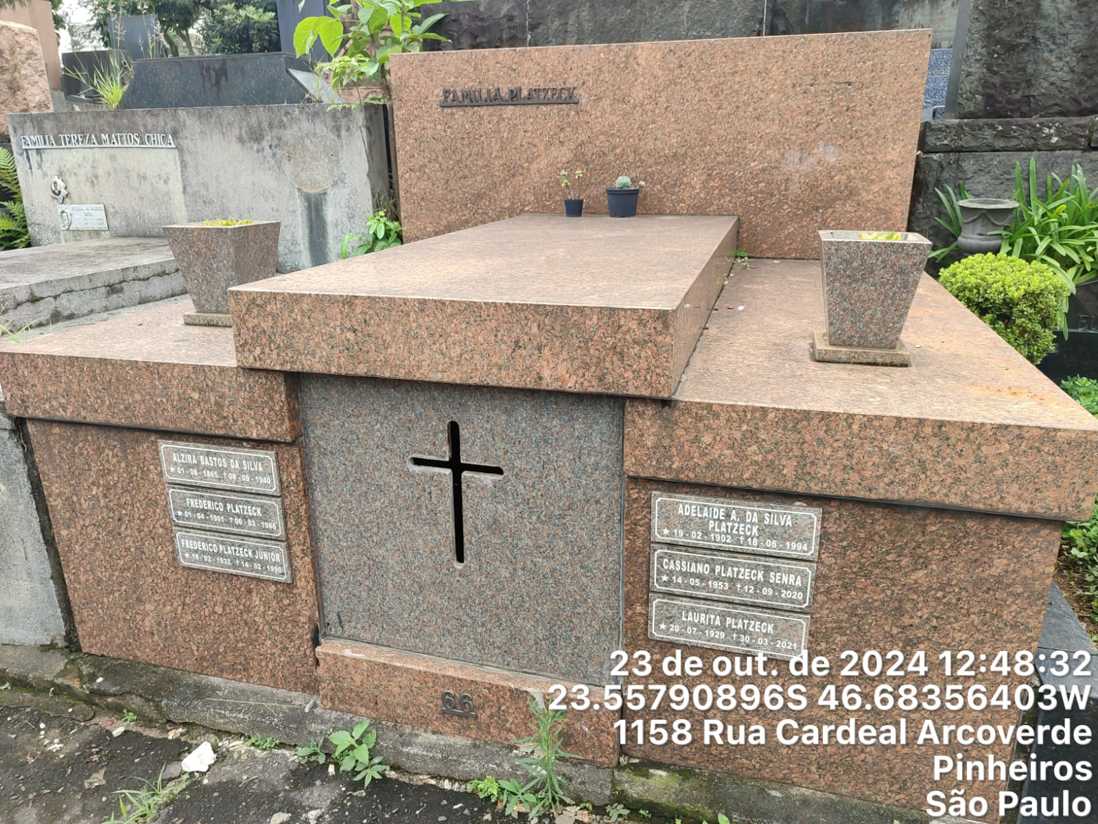 CASSIANO PLATZECK SENDRA - 12/09/2020, LAURITA PLATZECK - 30/03/2021, ADELAIDE DA SILVA PLOTZCK - 18/06/1994, FREDERICO PLATZECK JUNIOR - 15/02/1990, ALZIRA BASTOS DA SILVA - 07/11/1939, FREDERICO PLATZEK - 06/03/1986, MIGUEL FIORE - 27/05/1984