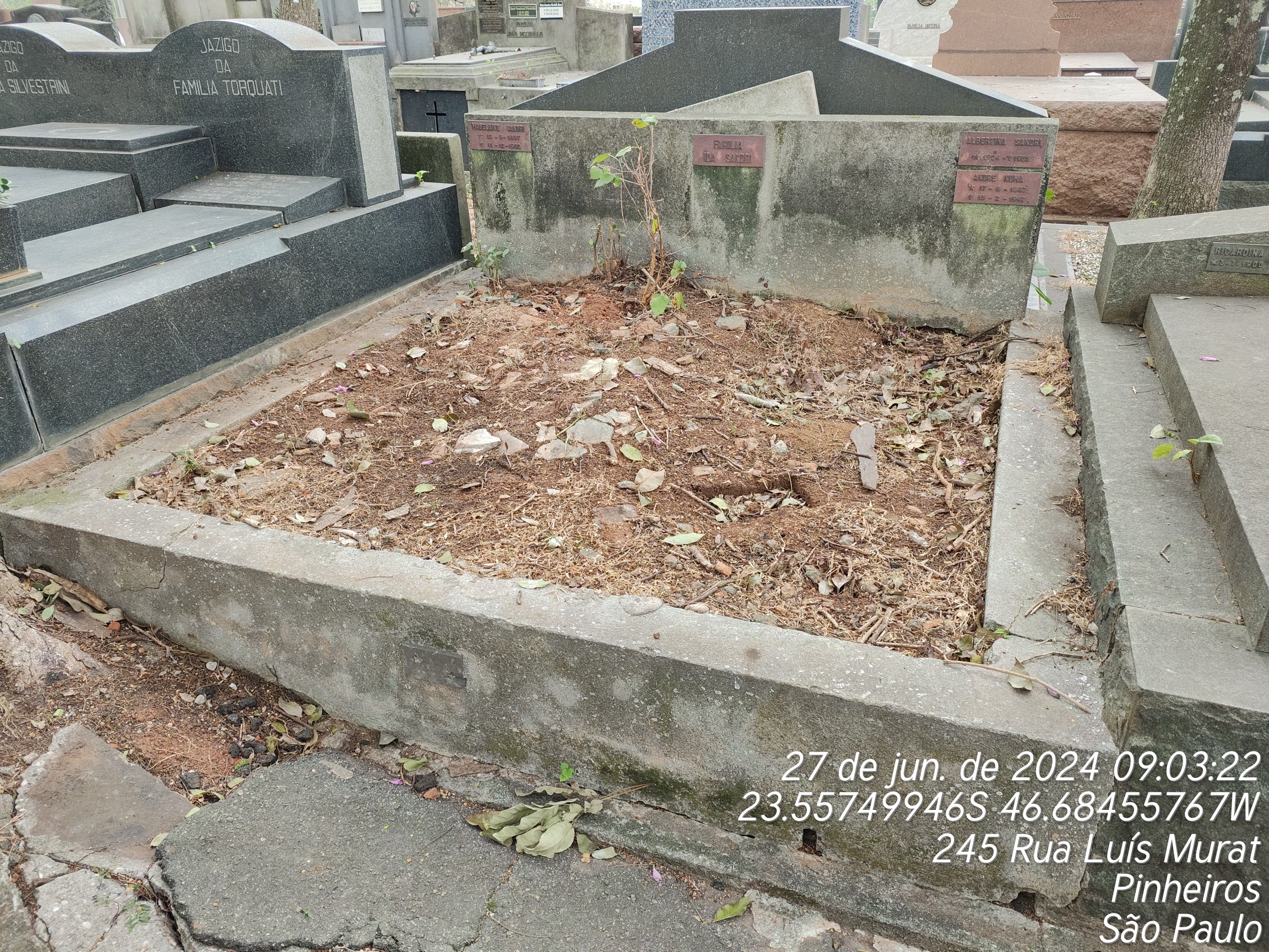 ALBERTINA LANDRI - 21/05/1935, IDA SANDRI - 13/07/1964, MADALEINI SANDRI CASTELLAN - 11/12/1980, JARBAS SILVA ONOFRE - 19/12/1990, IBRAHIM ARY - 06/10/1938, LUIZA LANTEIRON - 28/05/1973, ANDRE NEUMA - 15/02/1947, EMA SANDRI - 08/08/1955