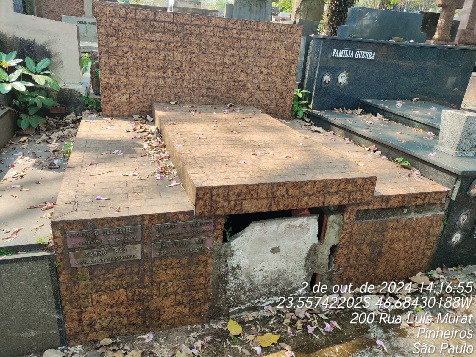 SERAFINA LATORRE RAO - 17/07/1935, IMACULADA RAO CASTALDELLO - 25/04/1985, SEVERINO DE OLIVEIRA RODRIGUES - 22/10/1980, CARMO RAO - 18/09/1984, FRANCISCO CASTADELLO - 17/01/1956