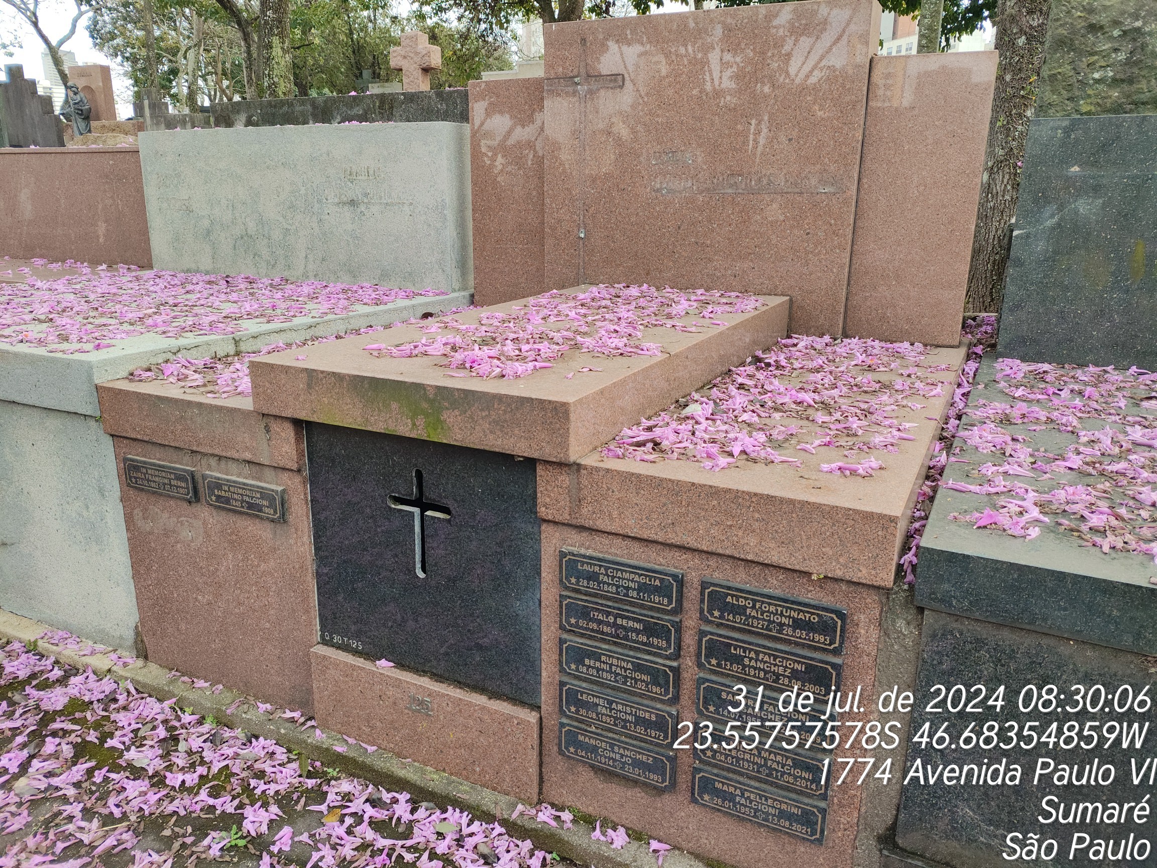 NILZA MARIA PELLEGRINI FALCIONI - 11/06/2004, ALDO FORTUNATO FALCIONI - 26/03/1993, MARIA PELLEGRINI FALCIONI - 13/08/2021, MANOEL SANCHES CONEJO - 24/01/1993, SANDRA FALCIONI SANCHEZ - 03/03/2009, LEONEL ARISTIDES FALCIONI - 13/02/1972, RUBINA BERNI FALCIONI - 20/02/1961