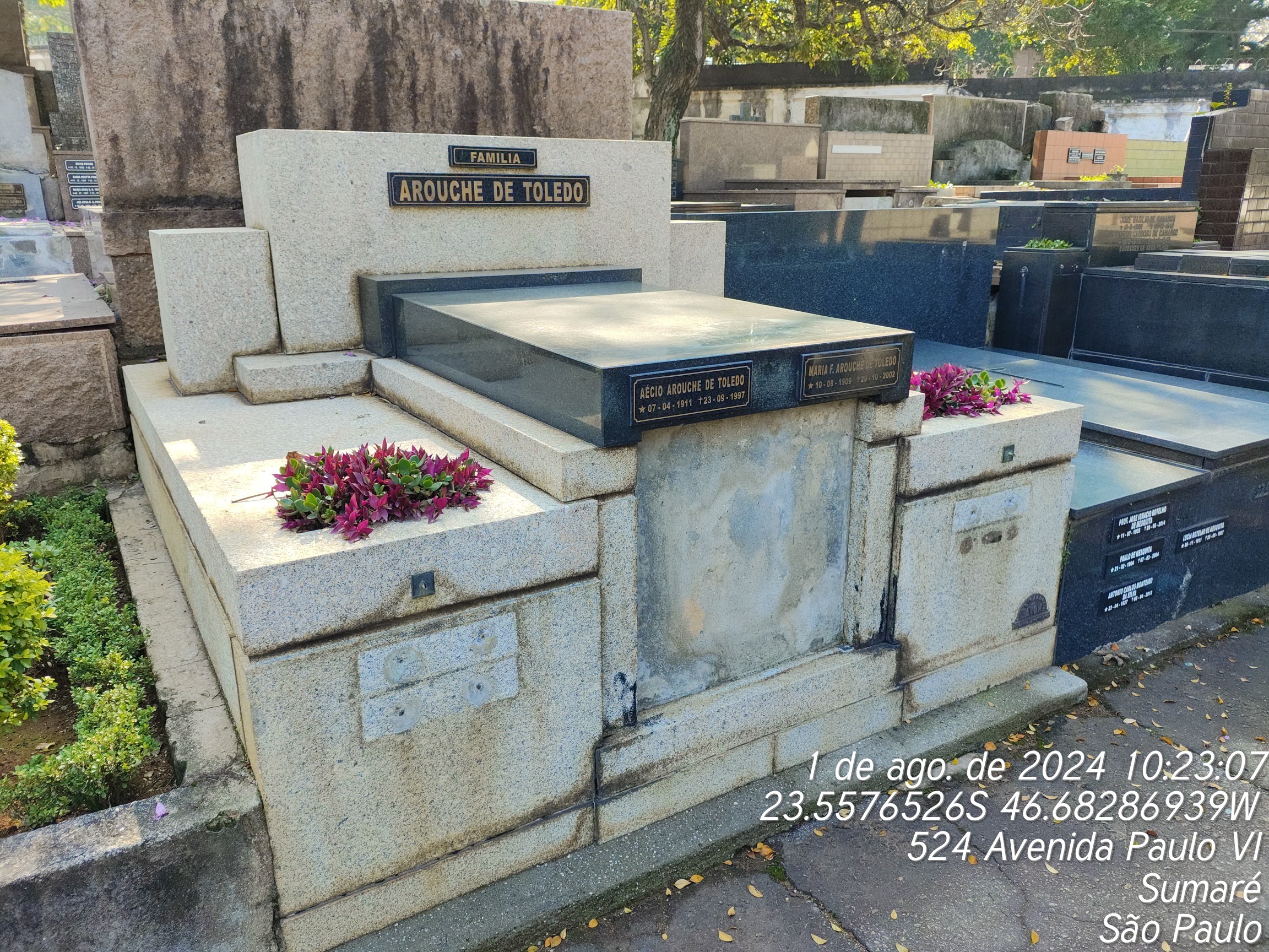 VIOLETA NATALI ROMANELLI - 11/01/2009, AECIO AROUCHE DE TOLEDO - 23/09/1997, MARIA FIGUEIREDO A TOLEDO - 29/10/2002, CESAR ALBERTO MARQUES - 02/07/1992, LIDIA NAVAJAS AROUCHE - 07/04/2006, LAVINIA DE CAMARGO CARNEIRO - 14/06/1996, LUISA PAMPLONA DE MORAES - 17/07/1980, IVAN AROUCHE DE TOLEDO - 26/03/1986, CANDIDA BOULHOSA - 06/11/1969, ORLINDA VAG PAMPLONA - 26/04/1949, IRENE PAMPLONA AROUCHE E SEU FILHO RECEM NASCIDO - 18/12/1942