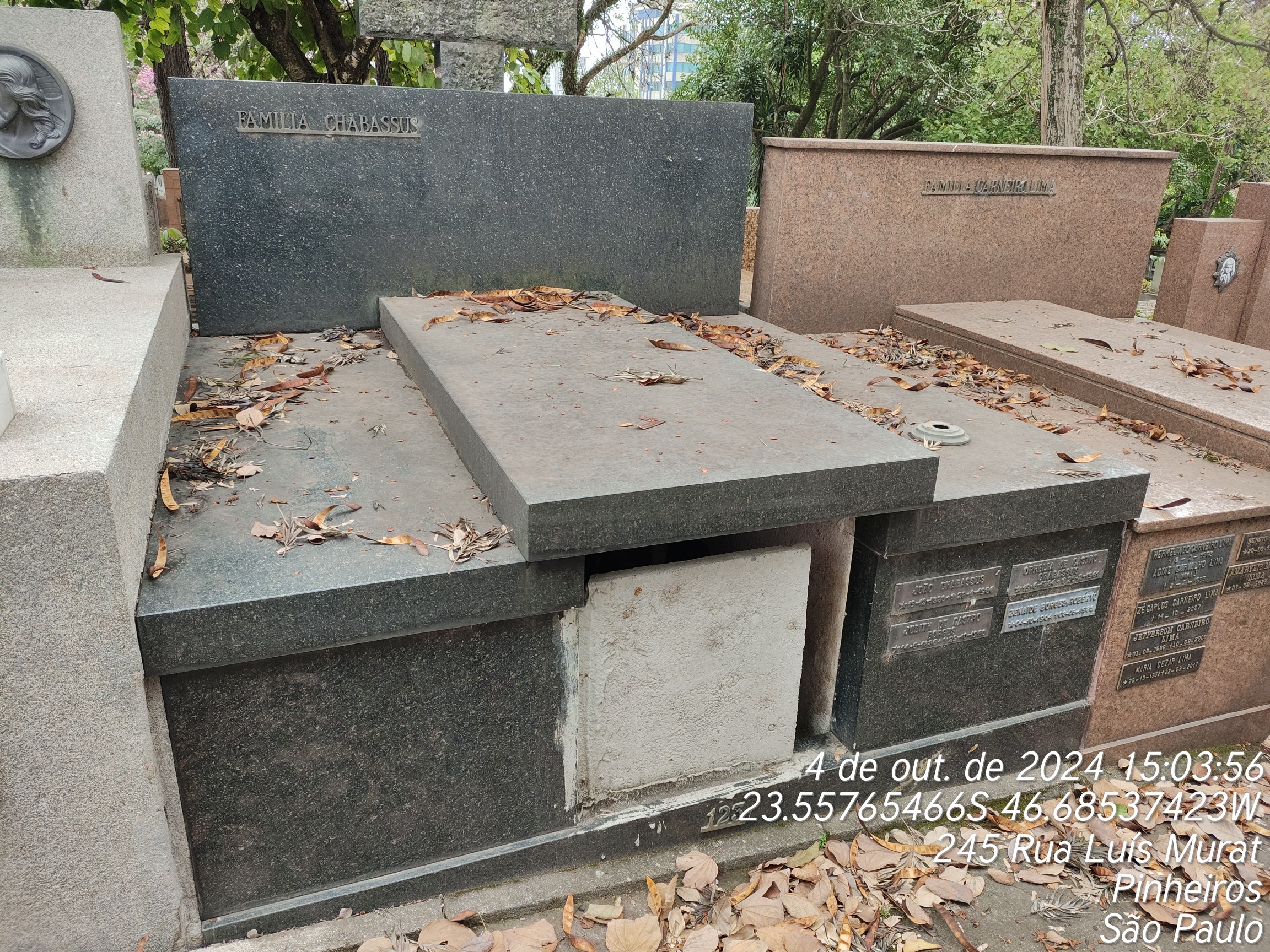 EGLATINA CHABASSUS - 06/04/2001, DULCE CHABASSUS - 01/10/2000, SUZETE CHABASSUS - 28/11/1994, JOAO LUCIANO CHABASSUS - 28/01/1956, ZENAIDE BORGES ROBERTO - 09/05/1985, JUDITH DE CASTRO BORGES - 29/10/1960, APHELIA DE CASTRO CHABASSUR - 25/02/1961, REJANA CHABASSUS - 03/11/1975, SUZANE CHABUSSUS - 17/05/1981