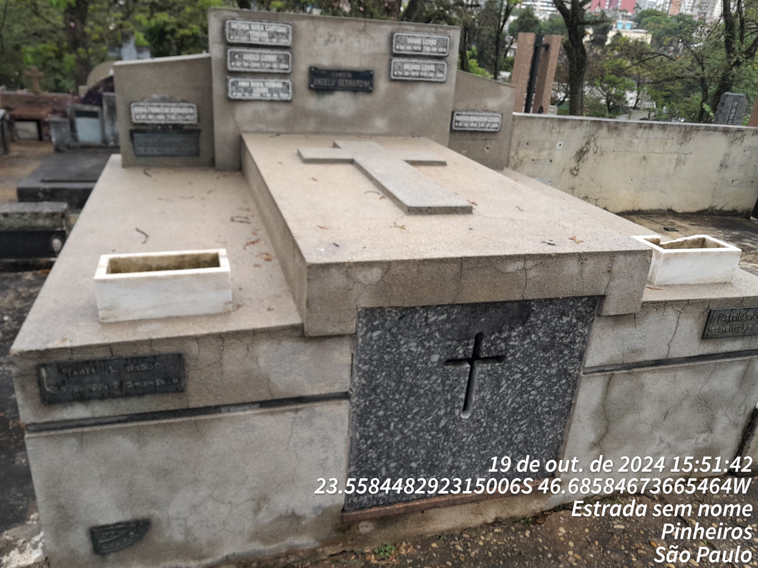 ANTONIA MARIA CANTISAMI FERRARA - 26/06/1994, ANGELO LIZIERO - 14/02/2004, AGNALDO CARASILO - 14/01/1989, AURORA DA COSTA CARASILO - 30/09/1993, PASCHOA BERNARDINI LIZIERO - 04/07/2009, APPARECIDA CAROLINA SANDOVAL - 08/08/1991, CATARINA FRANCINI - 20/09/1945, ORLANDO LIZEIRO - 11/06/1994, MARIA LIGIERO BASSO - 13/03/1989, MARIA FRANCINI BERNARDINI - 02/01/1973, ANGELO BERNARDINI - 11/12/1966, NELLA BATIGNANI BERNARDINI - 08/08/1986, FERDINANDO TACCOLA - 26/01/1976