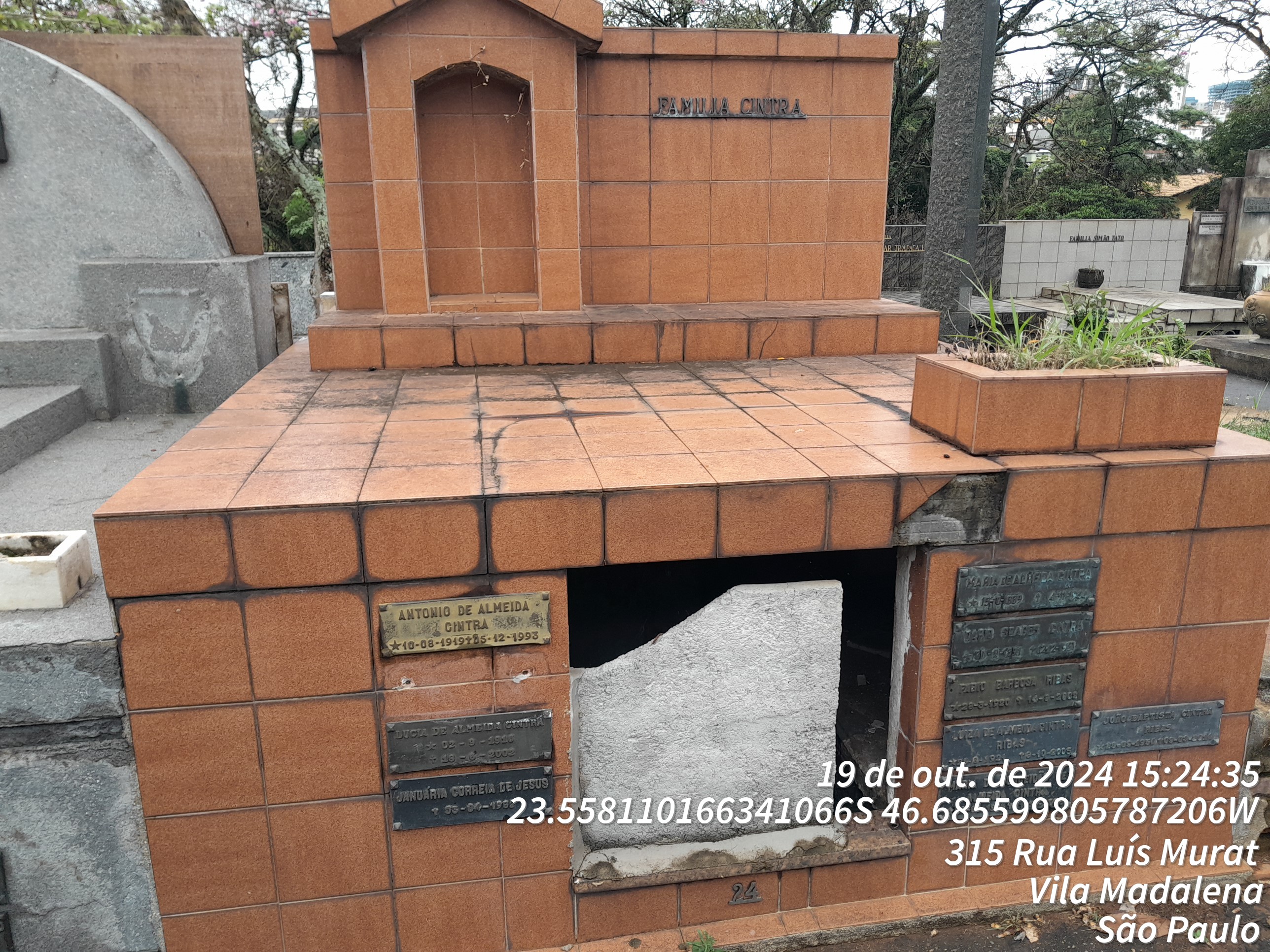 MARIA ALICE CINTRA MARTINS - 18/11/2000, MARIA DA CONCEICAO DE ALMEIDA CINTRA - 21/10/2005, FABIO BARBOSA RIBAS - 14/08/2002, LUIZA DE ALMEIDA CINTRA RIBAS - 08/10/2005, ANTONIO DE ALMEIDA CINTRA - 06/12/1993, LUCIA DE ALMEIDA CINTRA - 18/06/2002, JANUARIA CORREIA DE JESUS - 02/04/1982, MARIA CRISTINA DONATO MORGADO CINTRA - 06/06/1957, DARIO SOARES CINTRA - 12/12/1961, MARIA DE ALMEIDA CINTRA - 04/11/1944