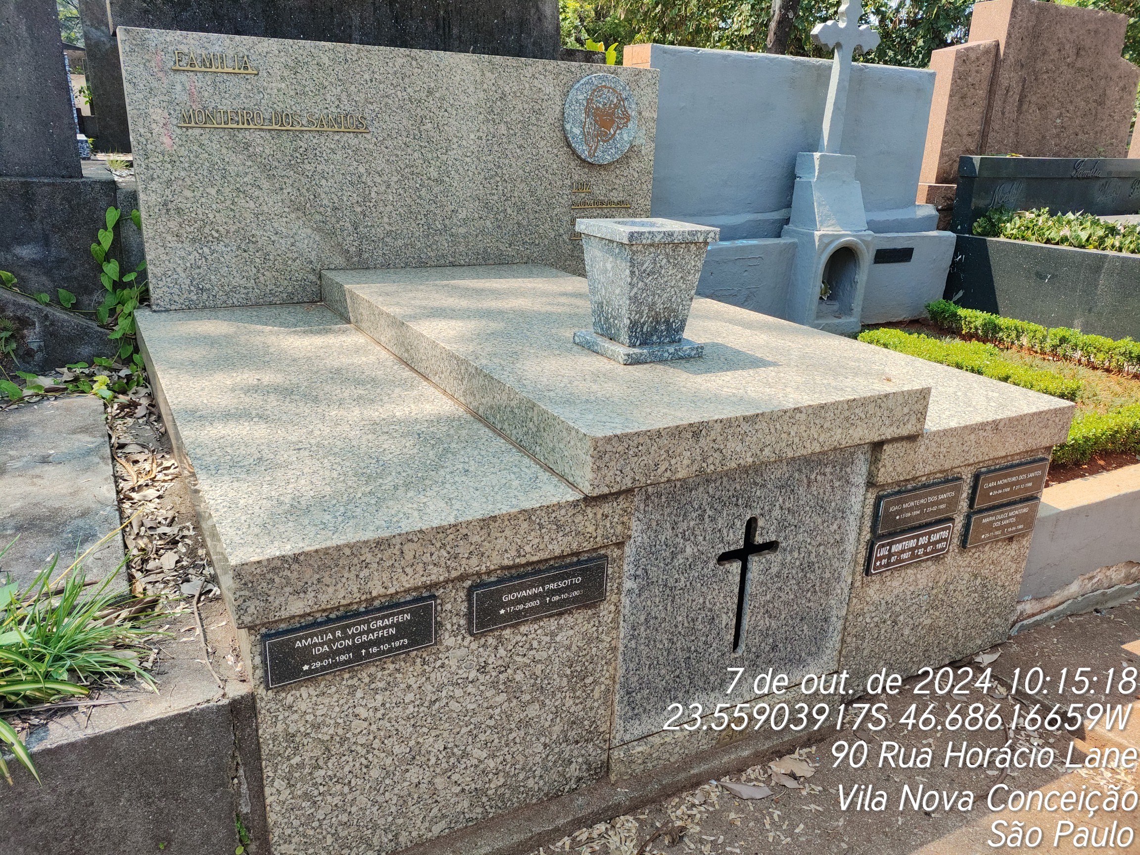 GIOVANNA PRESOTTO - 09/10/2003, JOAO MONTEIRO DOS SANTOS - 23/02/1950, CLARA MONTEIRO DOS SANTOS - 27/12/1988, MARIA DULCE MONTEIRO DOS SANTOS - 18/04/1989, LUIZ MONTEIRO DOS SANTOS - 22/07/1972, YDA VON GRAFFEN - 16/10/1973, AMALIA VON GRAFFON - 17/12/1966