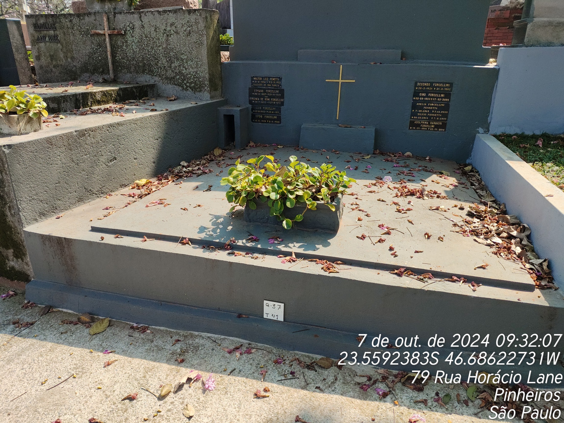 LUIZ PORCELLINI - 23/04/1975, SYLVIO PENNETTA - 08/04/1999, EGYDIO FORCELLINI - 02/08/1980, GINO FORCELLINI - 17/03/2005, VIRGINIA BONI FORCELLINI - 27/08/1972, SECONDO FORCELLINI - 21/08/1982, WALTER LUIZ PENETTA - 02/05/1953, ERMANO FORCELLINI - 25/11/1945, ADELIA PORCELLINI PENNETTA - 07/11/2009