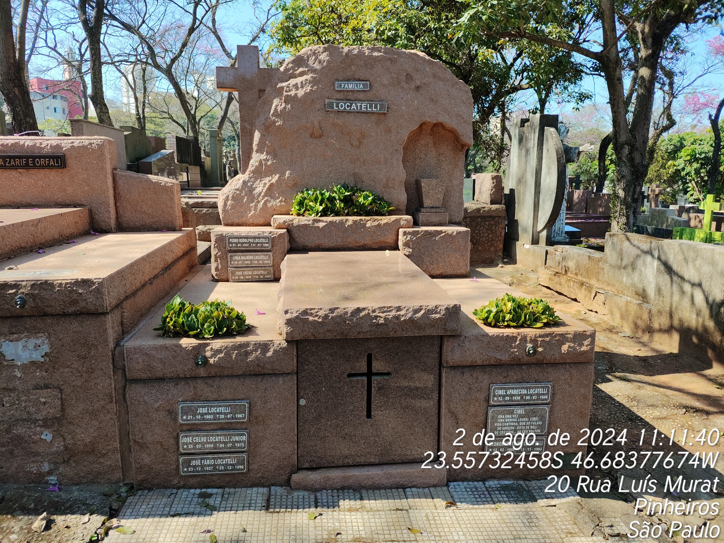 JOSE CELSO LOCATELLI - 16/06/2022, LEONOR SEVERINO LOCATELLI - 13/11/1993, PEDRO RODOLPHO LOCOTELLI - 21/07/1998, JOSE FABIO LOCATELLI - 25/02/1996, CIBEL APARECIDA LOCATELLI - 05/03/1945, JOSE LOCATELLI - 19/07/1967, JOSE CELSO LOCATELLI JUNIOR - 04/07/1975