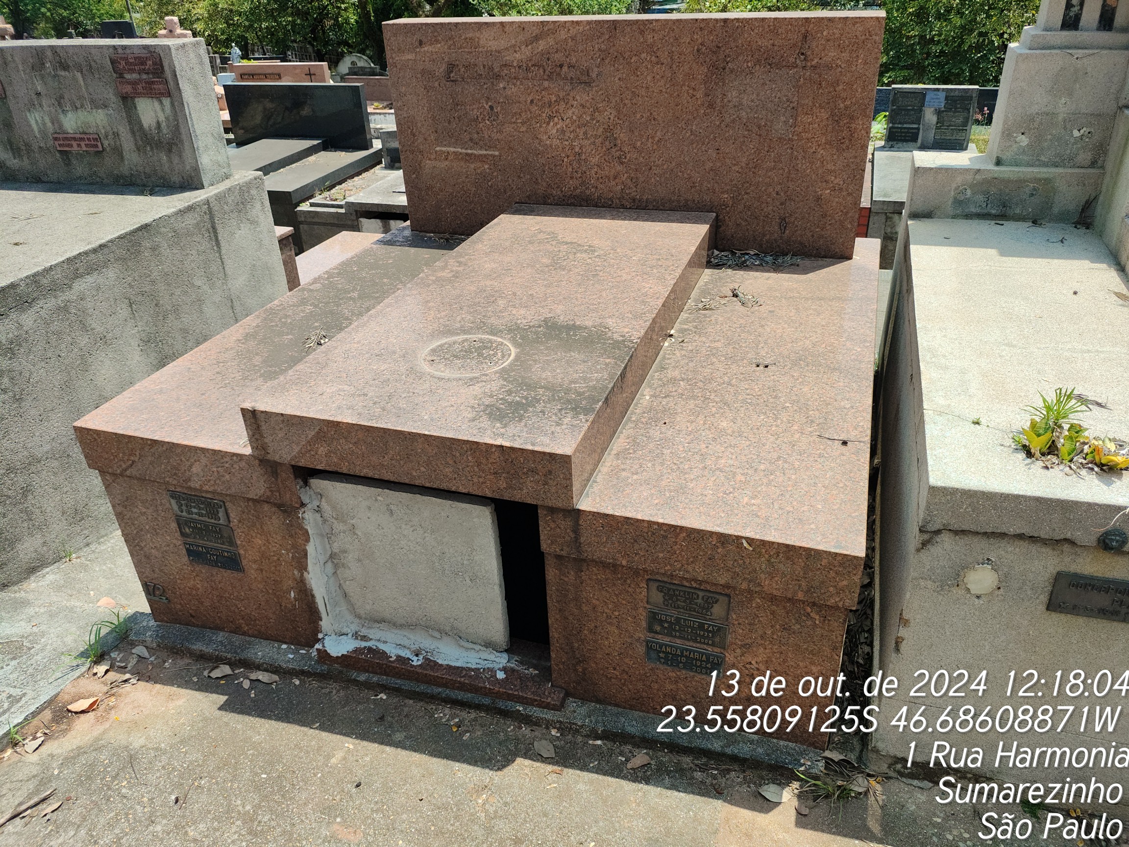 JAYME FAY - 09/04/2001, JOSE LUIZ FAY - 30/11/2000, YOLANDA MARIA FAY - 01/06/2001, DEMARCHI - 21/11/1970, CONCEICAO MARIA DA APARECIDA - 30/07/1955