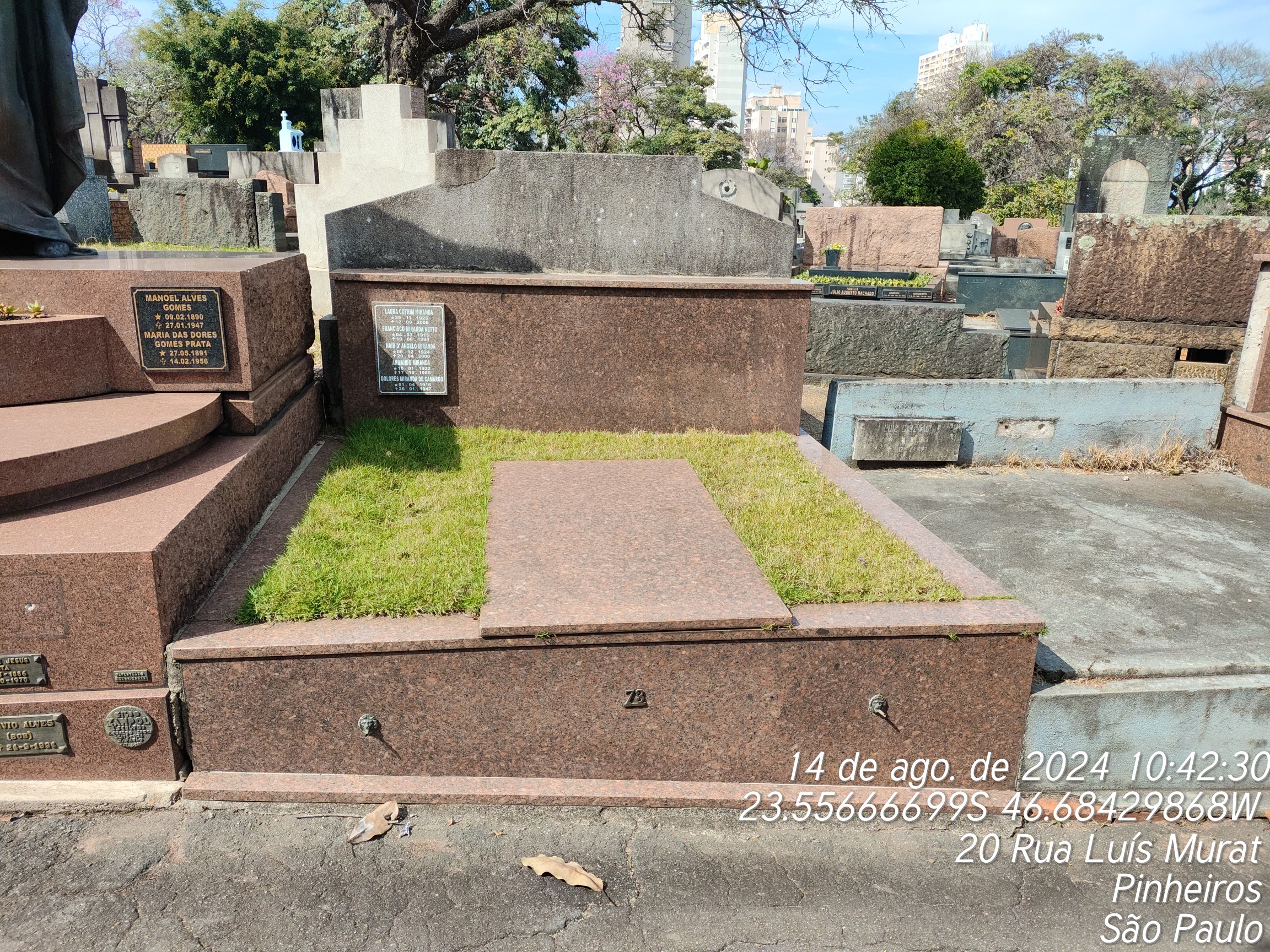 LAURA COTRIM MIRANDA - 12/09/2008, FRANCISCO MIRAMDA NETTO - 19/08/1994, ARMANDO MIRANDA - 16/10/1985, NAIR D'ANGELO MIRANDA - 20/04/2000, DOLORES DE CAMARGO MIRANDA - 26/01/1947