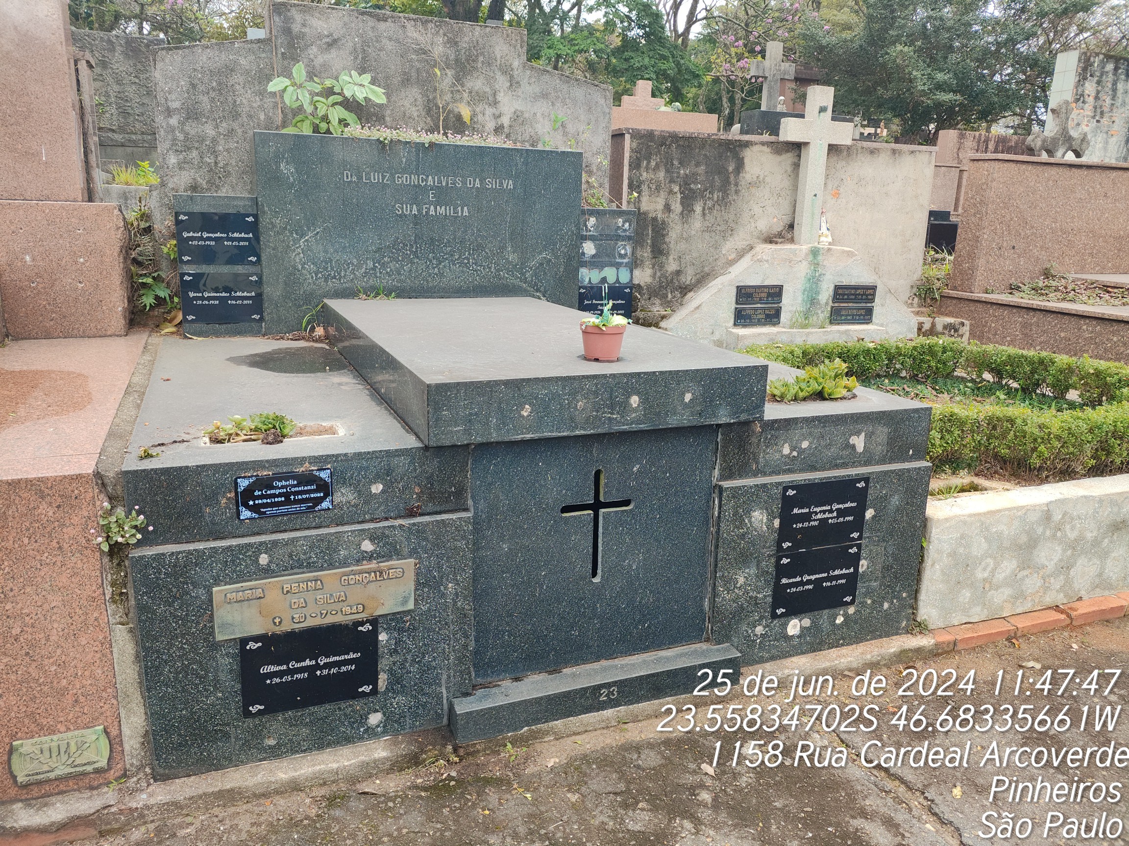 JOSE FERNANDO GONCALVES TEIXEIRA - 08/09/2002, YARA GUIMARAES DI MASE - 16/02/2018, OPHELIA DE CAMPOS CONSTANZI - 15/07/2022, MARIA EUGENIA GONCALVES SCHLOBACH - 05/08/1991, YOLANDA DOS SANTOS PINTO - 13/03/2000, RICARDO GRAGNANO SCHLOBACH - 16/11/1991, REGINA PENNA GONCALVES DA SILVA - 01/06/1943, MARIA LECTICIA GONCALVES DA SILVA - 16/05/1956, CARMEN GON€ALVES TEIXEIRA - 10/02/1982, CARLOS AUGUSTO DA R0CHA BOTELHO - 26/04/1996, FRANCISCO PINTO - 11/02/1986, CECILIA SAMPAIO CORREA - 30/01/1971, JOSE LUIS GON€ALVES DA SILVA - 15/08/1979, LUIZ GONCALVES DA SILVA - 03/10/1952, JOSE SEBASTIAO DA ROCHA BOTELHO - 24/12/1961, JAYME PENNA TEIXEIRA - 12/07/1981, JOSE LUIZ DA ROCHA BOTELHO - 27/10/1984, MARIA PENNA GONCALVES DA SILVA - 30/07/1949, MARIA LOURDES ROCHA BOTELHO - 13/05/1947