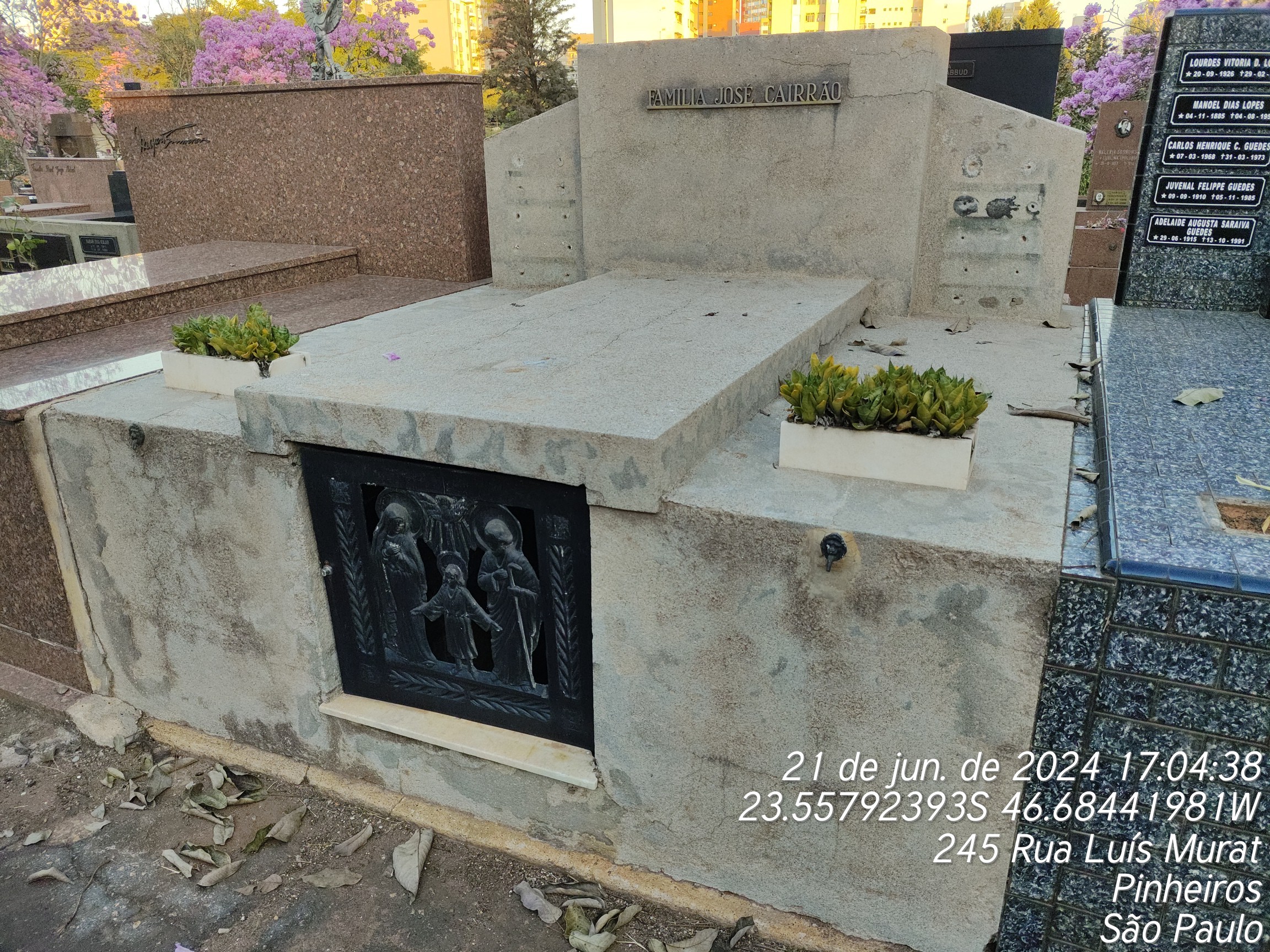 JOSE CAIRRAO - 26/11/1978, CARLOS ALBERTO FIORE - 11/03/1993, CAMILLO NOVELLO FILHO - 22/09/1994, URINEU DE OLIVEIRA GODINHO - 03/03/1999, MARIA DO CARMO FIORE - 09/09/1997, MAXIMINA ANTUNES FERREIRA - 05/07/1979, PATROCINIA ANTUNES DA CRUZ - 26/06/1978, THEREZA ANTUNES - 20/11/1935, GENOVEVA ANTUNES CONCEICAO - 19/04/1971, LUCIA DE CASTRO BUENO - 07/08/1984, SEMIRAMES VITTA FIORE - 29/07/1988