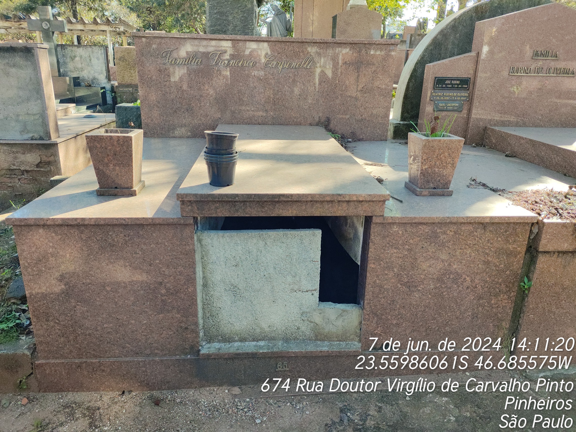 GERALDINE CARPINELLI - 09/12/2006, JOAQUINA DE CASTRO - 11/02/1945, JOSE ALBERI - 16/11/1947, FRANCISCO CARPINELLI - 25/08/1957, LUIZA FERREIRA CUNHA - 14/07/1971, ANNA FERRARA CORPINELLI - 11/01/1967