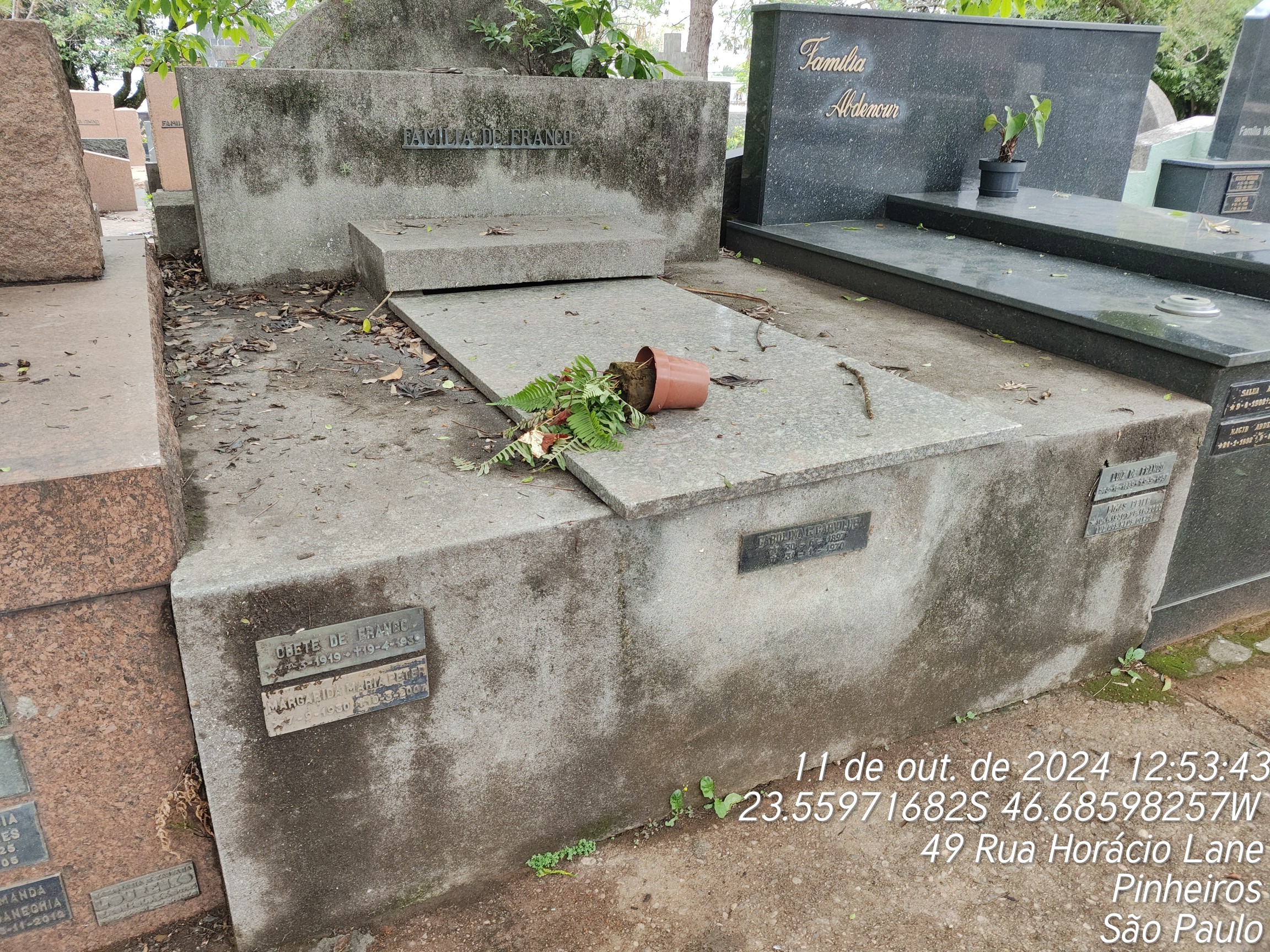 DIMAS PETER - 28/11/2000, ECLEIA COELHO FRANCO - 22/06/2009, LUIZ CYRILLO - 08/06/1983, JOSE DO FRANCO - 08/12/1968, MARIA EPEFANIA TEIXEIRA - 20/09/1964, JOAQUIM COUTINHO ROCHA - 28/10/1964, MARIA MARQUES LOPES - 12/12/1966, LUIZ DE FRANCO - 09/09/1957, CAROLINA CYRILLO CARVILHE - 01/02/1970