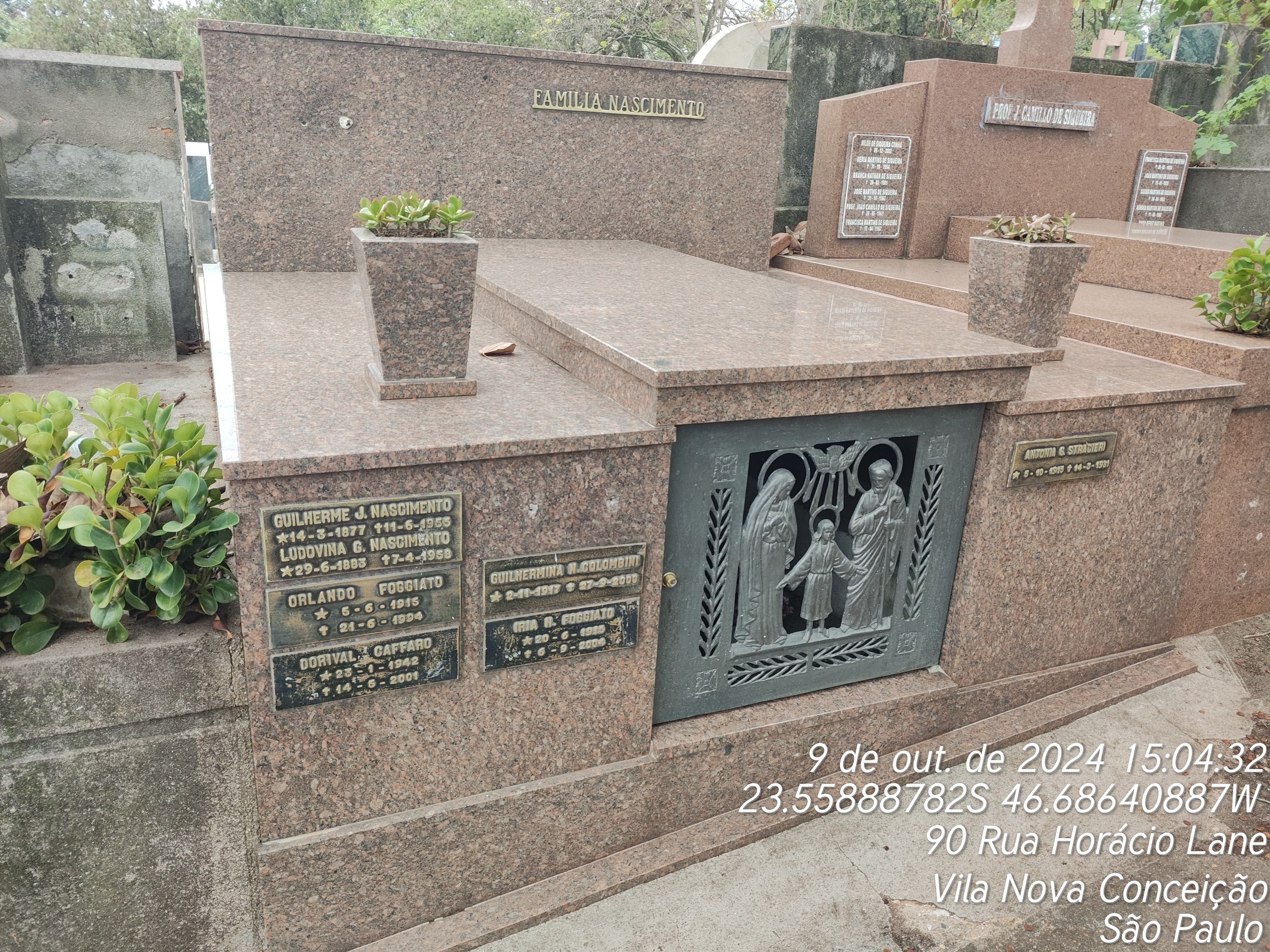 ORLANDO FOGGATO - 21/06/1994, DORIVAL CAFFARO - 14/05/2001, ANTONIA GUILHERMINA STRACIERI - 14/03/1981, ANTONIO VALENTIM NASCIMENTO - 11/08/1987, LUDOVINA DAS GRACAS DE JESUS - 07/04/1958, IRIA NASCIMENTO FOGGATO - 06/09/2004, GUILHERMINA N. COLOMBINI - 27/09/2000, RITA DE CASSIA COLOMBINI - 29/12/1964, GUILHERME DE JESUS NASCIMENTO - 11/06/1955