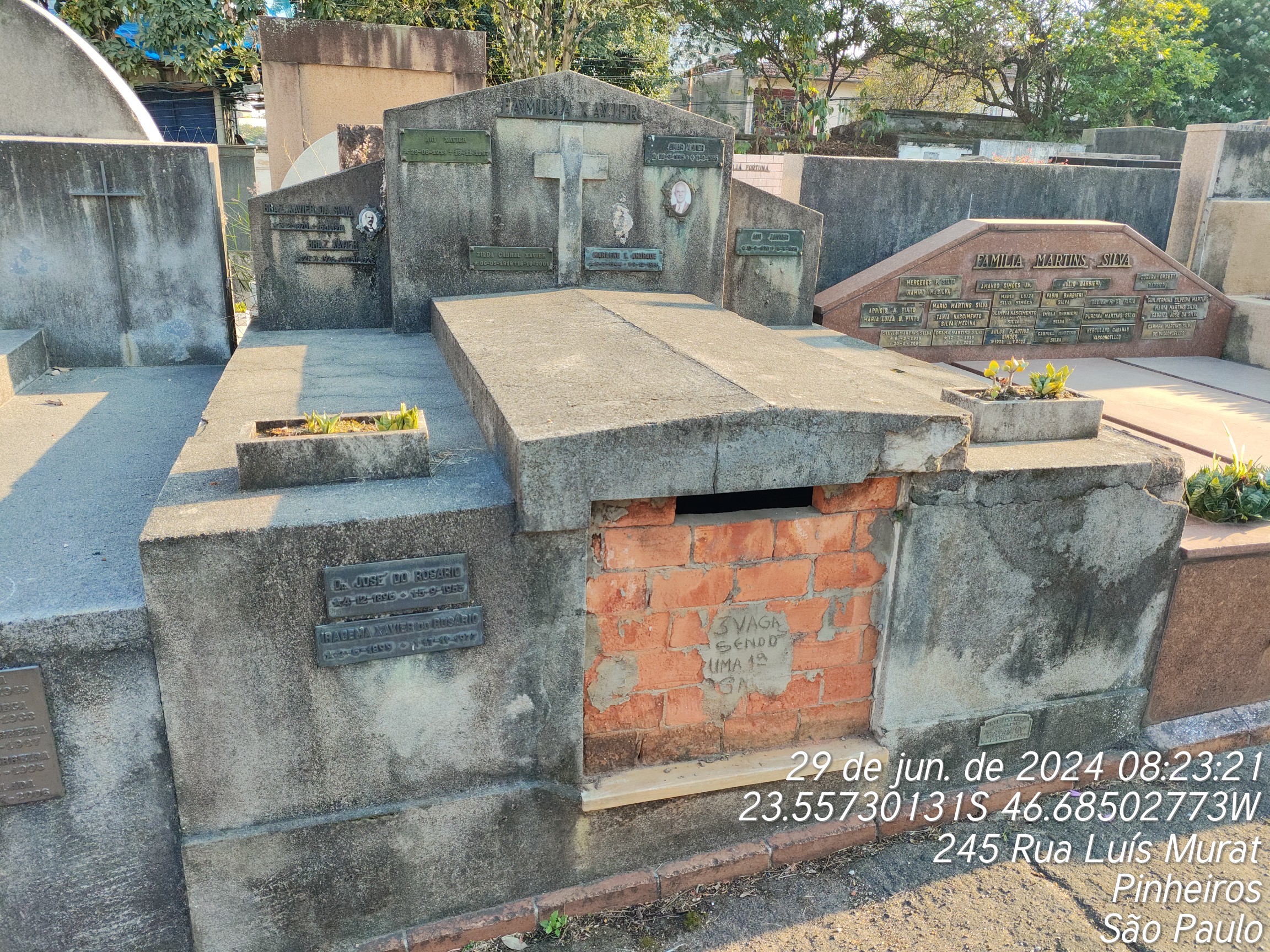 JOSE DO ROSARIO JUNIOR - 15/08/1992, MARIA FREIRE XAVIER - 19/07/1985, JOSEFINA MACHADO XAVIER - 05/06/1972, DURVAL MACHADO XAVIER - 09/05/1987, OMAR XAVIER - 11/09/1966, MARLENE XAVIER ANDRADE - 08/12/1966, IRACEMA XAVIER DO ROSARIO - 17/11/1977, ARI XAVIER - 18/11/1987, ADI XAVIER - 17/05/1945, JOSE CABRAL MOURA COUTINHO JUNIOR - 04/02/1978
