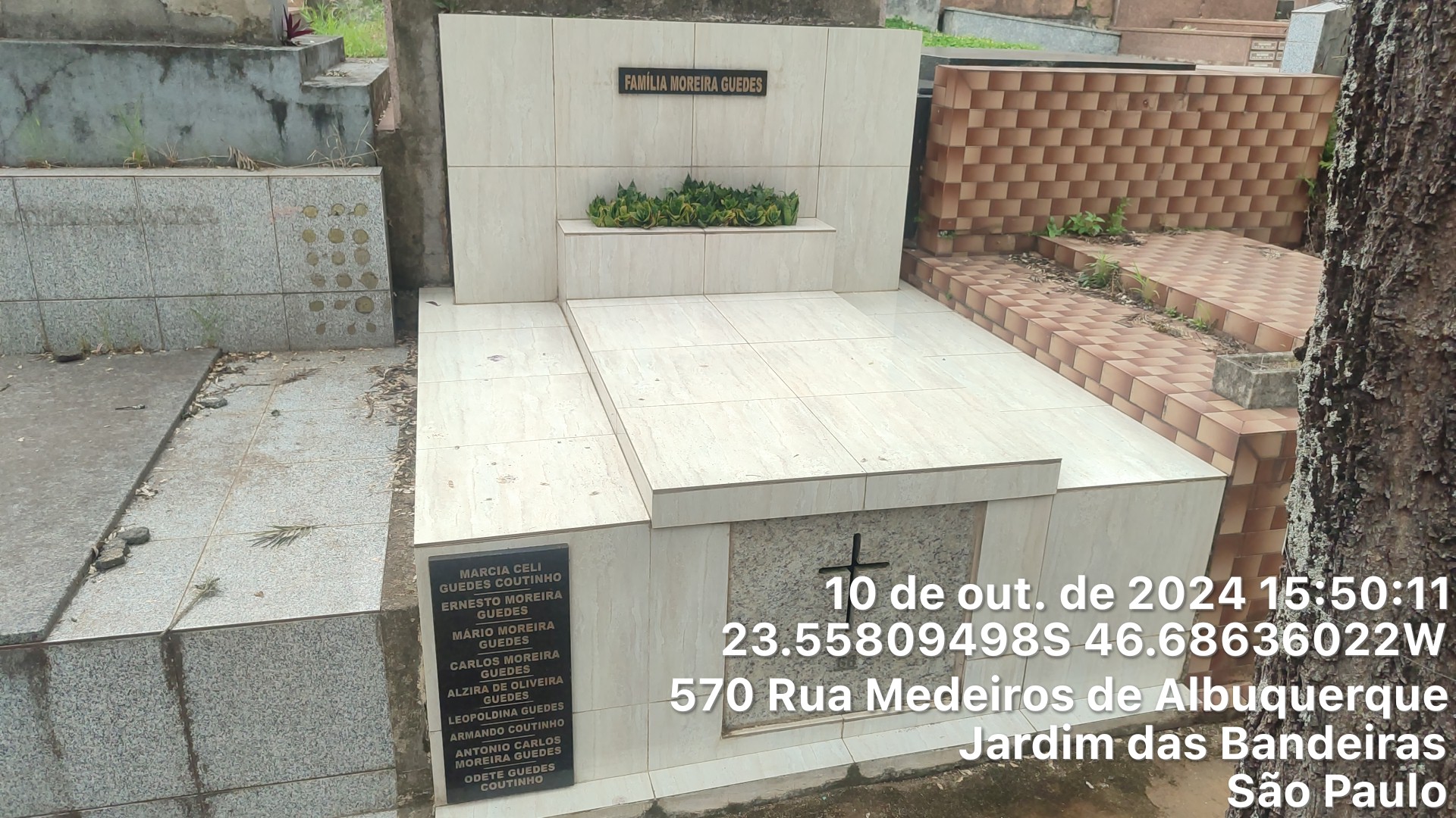 LEOPOLDINA BRESEANE GUEDES - 12/05/1996, ANTONIO CARLOS MOREIRA GUEDES - 03/02/1998, CARLOS MOREIRA GUEDES - 21/05/1975, ALZIRA DE OLIVEIRA GUEDES - 03/04/1990, NOEMI MARIA FERRAZ P. COSTA - 23/09/2000, ERNESTO MOREIRA GUEDES - 18/04/1969, ARMANDO COUTINHO - 19/10/1990, MARCIA CELI GUEDES COUTINHO - 19/04/1949, MARIO MOREIRA GUEDES - 03/08/1974
