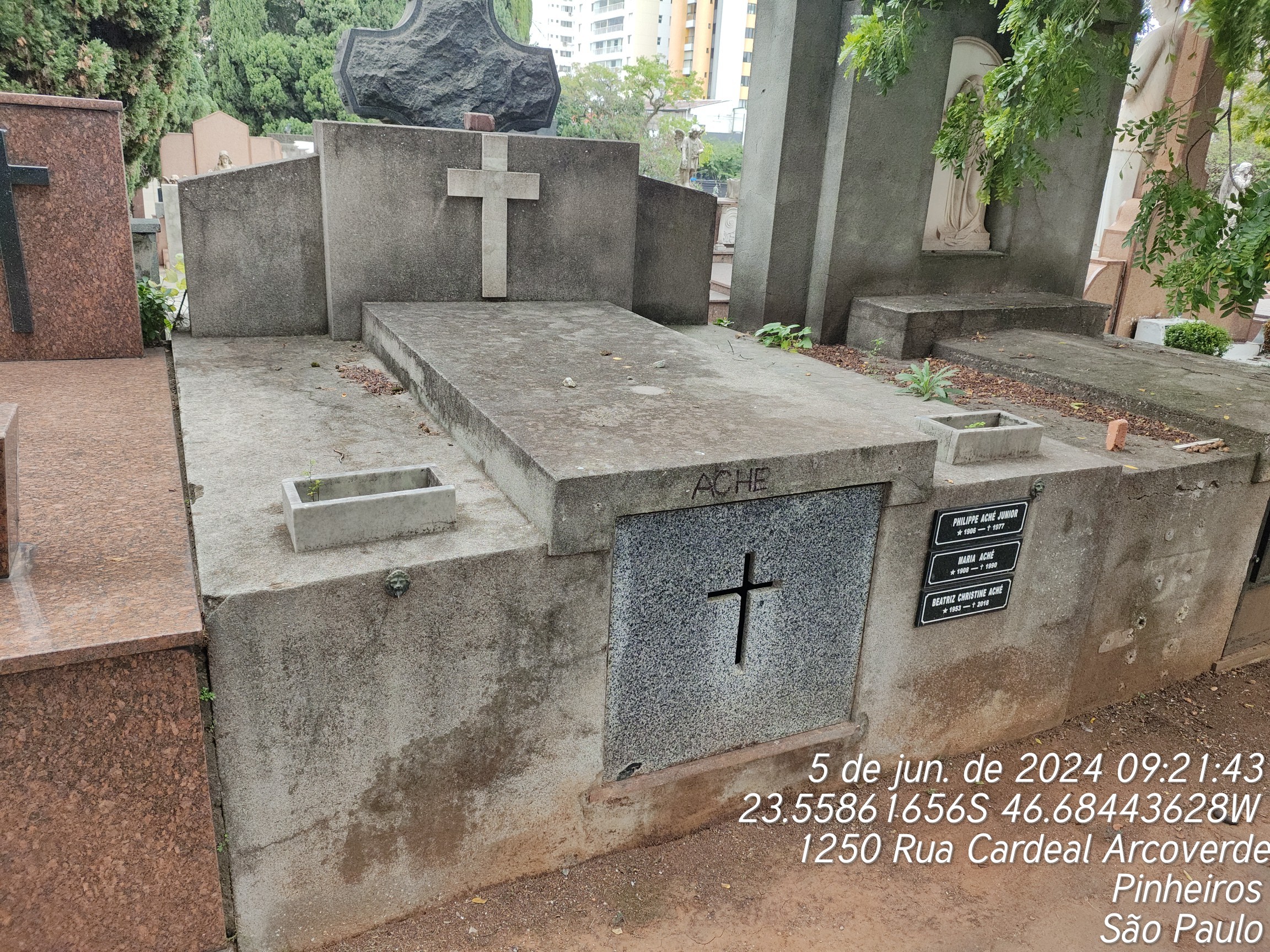 ANTONIETA ACHE PEREIRA RESENDE - 27/12/1993, MARIA ACHE - 25/12/1990, SILVIO LOYOLA ACHE - 10/11/1990, BEATRIZ CHRISTIANE ACHE - 24/09/2018, LINA LOYOLLA ACHE - 21/01/1930, LEONOR ACHE DE FREITAS - 07/02/1986, PHILIPE ACHI JUNIOR - 02/07/1977, LUCIA ACHE - 28/01/1976