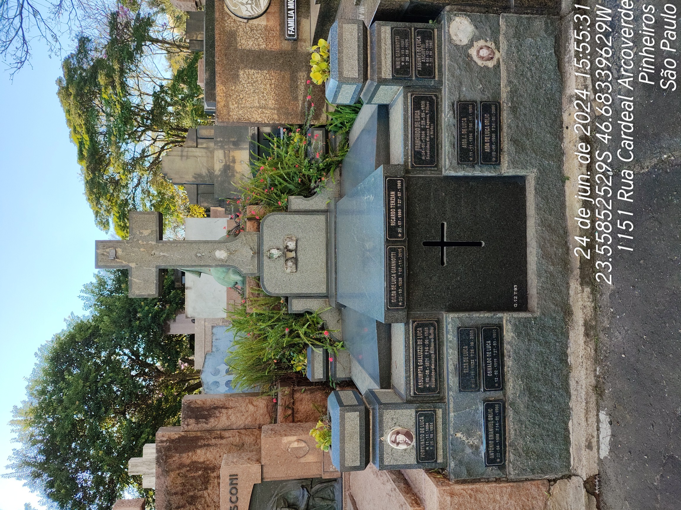 ELZA DE LUCA - 28/08/2005, AIDA DE LUCCA ORLIC - 24/02/2001, OSWALDO DE LUCA - 27/03/1990, ETTORE DE LUCA - 15/01/1973, AIDA JAMMARELLI DE LUCCA - 08/11/1986, ALFREDO DE LUCA - 19/08/1947, NATI MORTO - 28/03/1972, ANTONIO EMANUEL ORLIC - 14/01/1966, RICARDO TERZIAN - 27/07/1969, ASSUMPTA HELENA DE LUCCA ASCIOTTI - 21/04/1968, FORTUNATO DE LUCA - 25/10/1954, FRANCISCO DE LUCCA - 27/05/1936, ACHEROPITA ASSUMPTA GALUZZI DE LUCCA - 15/06/1945