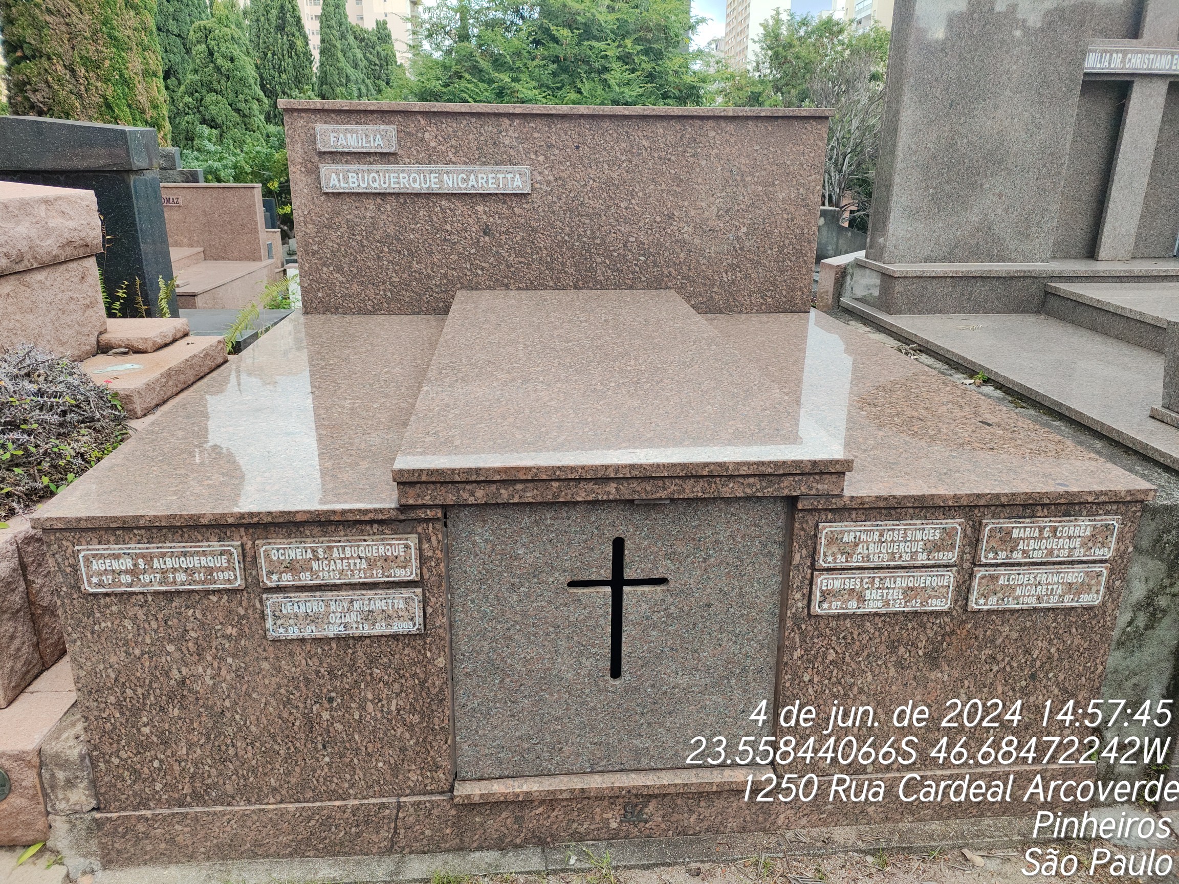 ALCIDES FRANCISCO NICARETTA - 30/07/2003, ANGENOR SIMOES DE ALBUQUERQUE - 06/11/1993, OCINEIA SIMOES ALBUQUEQUER NICARRETA - 23/12/1993, MARIA CORREA DE ALBUQUERQUE - 05/03/1943, EDWIGES CONCEICAO SIMOES DE ALBURQUERQUE BRITZER - 23/12/1962, ANTONIO SIMOES DE ALBUQUERQUE - 03/06/1978