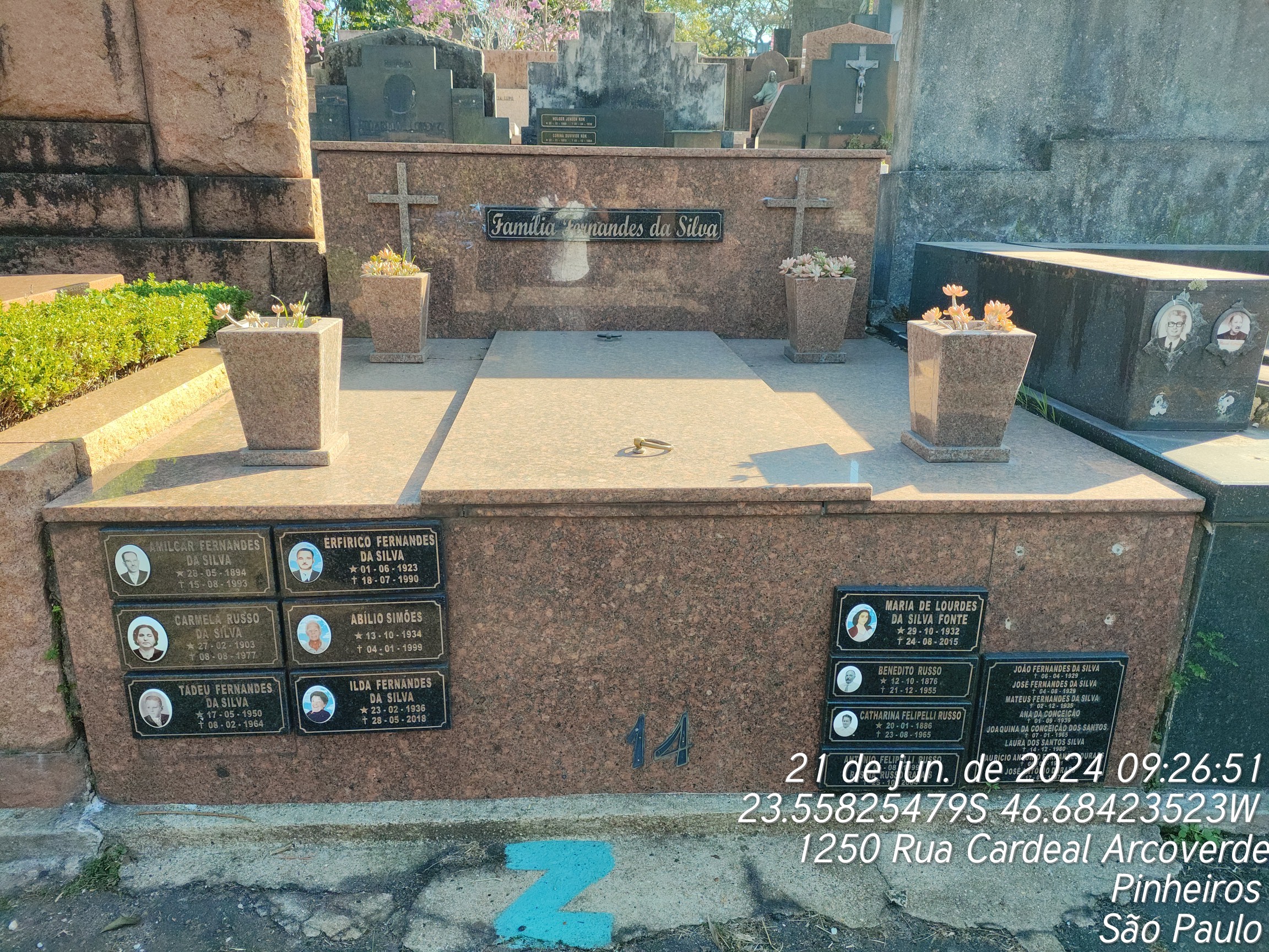 AMILCAR FERNANDES DA SILVA - 15/08/1993, ANA FERNANDES JULIANO - 13/03/2019, ABILIO SIMOES - 04/01/1999, LUCIO ANTONIO JULIANO - 14/03/2017, ANTONIO JULIANO - 08/10/1996, ANA DA CONCEICAO - 01/09/1939, TADEU FERNANDES DA SILVA - 08/02/1964, MATEUS FERNANDES DA SILVA - 02/12/1935, JOSE ANTONIO DURAES - 17/01/1987, ERFIRICO FERNANDES DA SILVA - 18/07/1990, LAURA DOS SANTOS SILVA - 14/12/1980, JOAQUINA DA CONCEICAO DOS SANTOS - 07/01/1965, JOSE DOMINGOS MARCONDES DE CARVALHO - 22/05/1963, MAURICIO ANTONIO FERNANDES DURAES - 06/08/1981, CARMELLA RUSSO DA SILVA - 08/08/1977, MATEUS FERNANDES DA SILVA - 18/02/1958