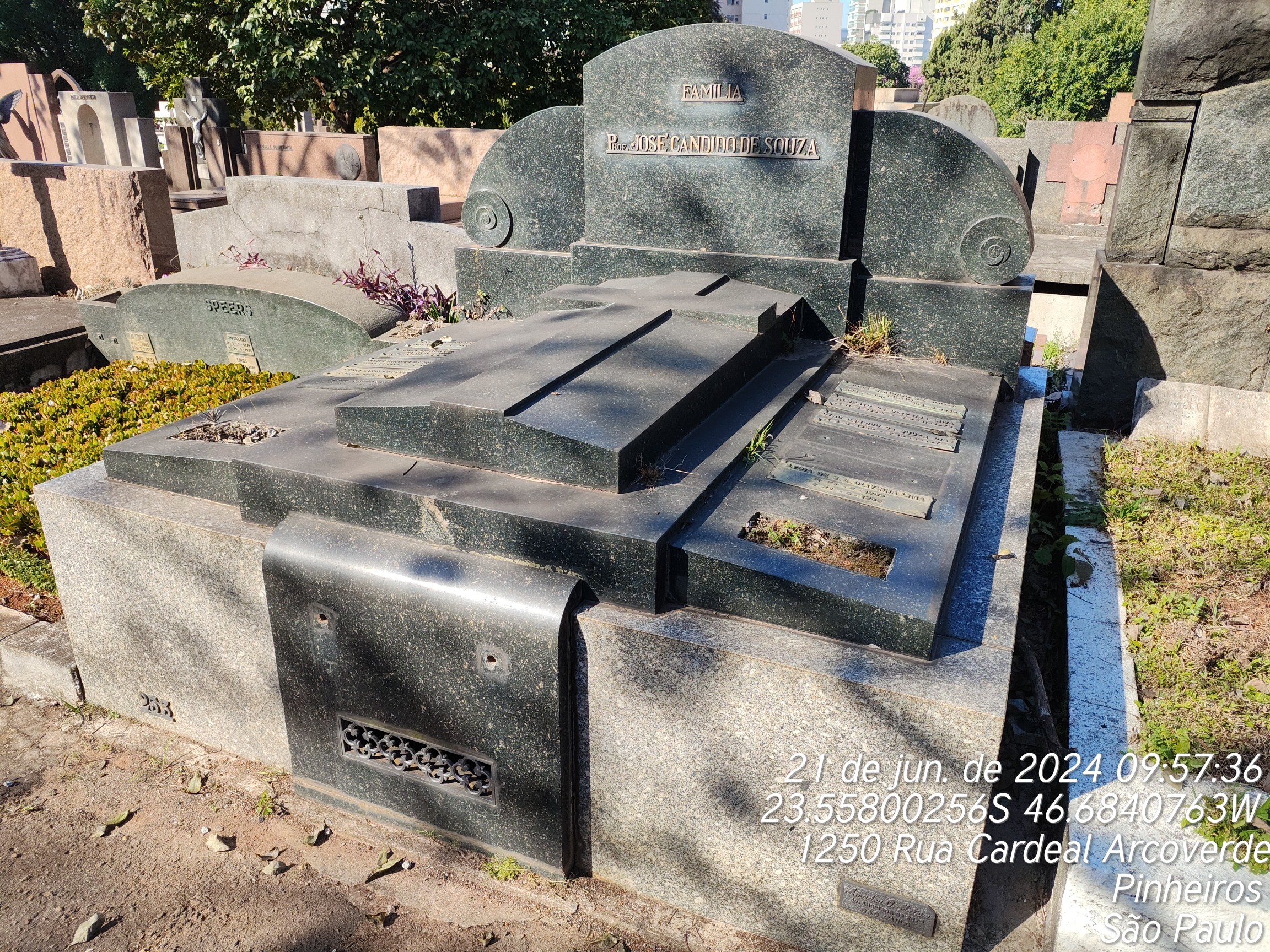 LINNEO CARLOS DE SOUZA DIAS - 23/09/1978, PLINIO CANDIDO DE SOUZA DIAS - 01/11/1990, JOSE CANDIDO DE SOUZA - 18/09/1937, JORGE CANDIDO DE SOUSA - 14/09/1983, ALBERTO DE OLIVEIRA LIMA - 06/11/1970, MARIA ANGELICA FERREIRA DA ROSA E SOUZA - 28/02/1951, CIRO CANDIDO DE SOUZA DIAS - 19/05/1973