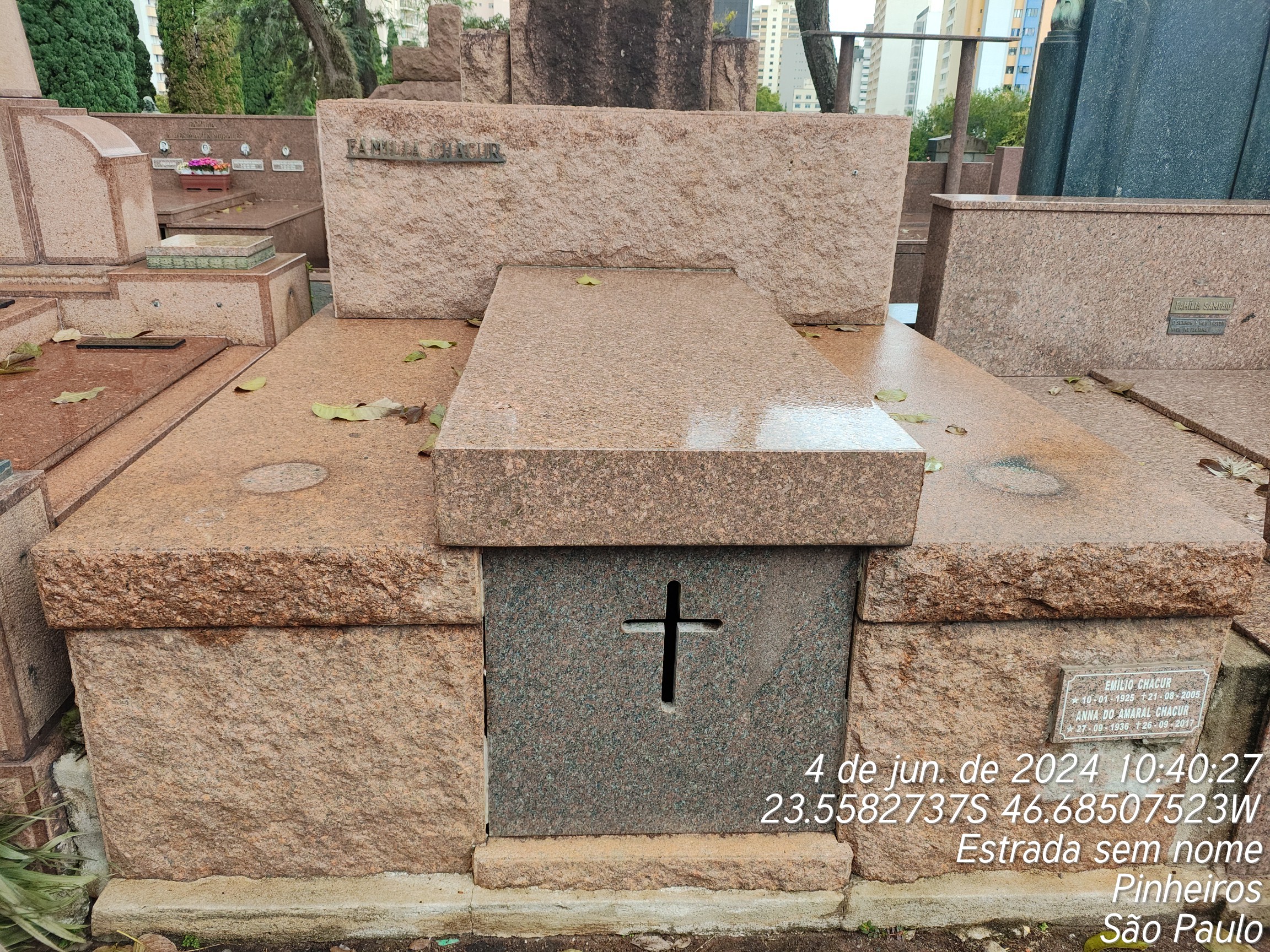 GILBERTO CORREA NEVES - 28/03/1992, ODETTE CHACUR - 26/07/2010, YVONNE CHACUR - 04/02/2021, ADIB CHACUK - 17/06/1998, MICHEL CHACUR - 23/12/1995, ROSA SALEM CHACUR - 25/08/1936, WASSILA CHACUR - 14/02/1943, MARIO CHACUR - 11/02/1989, TAMAN CHAMI CHACUR - 22/09/1985, MUSSA CHACUR - 09/11/1985, JODAT CHACUR - 18/10/1964, BASILIO CHACUR - 10/08/1972, LIAN CHACUR - 19/09/1972, AMIN CHACUR - 05/12/1964, AGABI CHACUR - 19/12/1961, NAGIBI CHACUR - 15/08/1974
