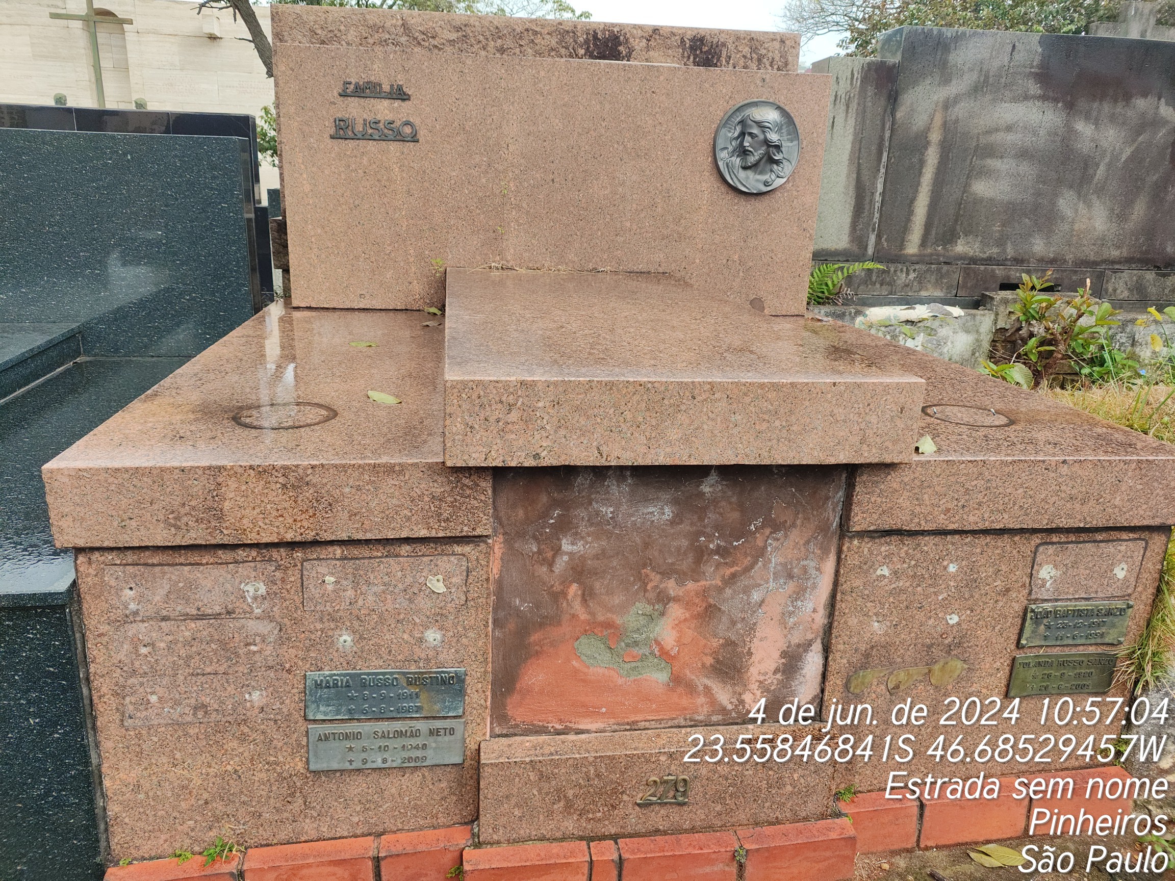 JOSE CARLOS MASTROIANNI - 07/12/1992, YOLANDA RUSSO SANZO - 06/06/2001, JOAO BAPTISTA SANZO - 11/06/1991, ROSINA RUSSO GUZZO - 13/07/2009, YOLANDA RUSSO SANZO - 24/06/2001, ANTONIO RUSSO - 24/03/1932, ANTONIO MASTROIANI - 06/03/1958, ORLANDO MAFALDO GOZZO - 06/06/1975, ANGIOLINA COSTARI RUSSO - 10/10/1964, VICENZO RUSSO - 09/08/1989, MARIA RUSTINO - 07/08/1987, FRANCISCO RUSSO - 05/08/1965, ROCCO RUSTINO - 28/01/1978