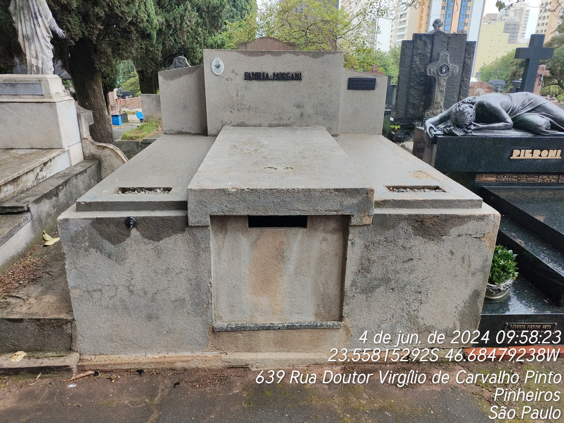 CARLOS LORENZATO - 24/05/2007, LUCIA SARTORI SERAVELLI - 24/03/2009, NATALINA SARTORI DE OLIVEIRA - 01/06/2002, SANTA IMBASTARO SARTORI - 05/05/1989, LAURINDO SARTORI - 30/06/1983, RAPHAEL MORGANI - 19/11/1930, ALFREDO - 21/12/1930, ANGELINA SERTORIO MORGANI - 09/11/1964, ARSIDIO SARTORI - 30/04/1977, NAIR MORGANI ALALCON - 16/03/1951, ELIZA DE SOUZA VILAS BOAS - 13/05/1963, CARLOS MORGANI - 27/11/1974