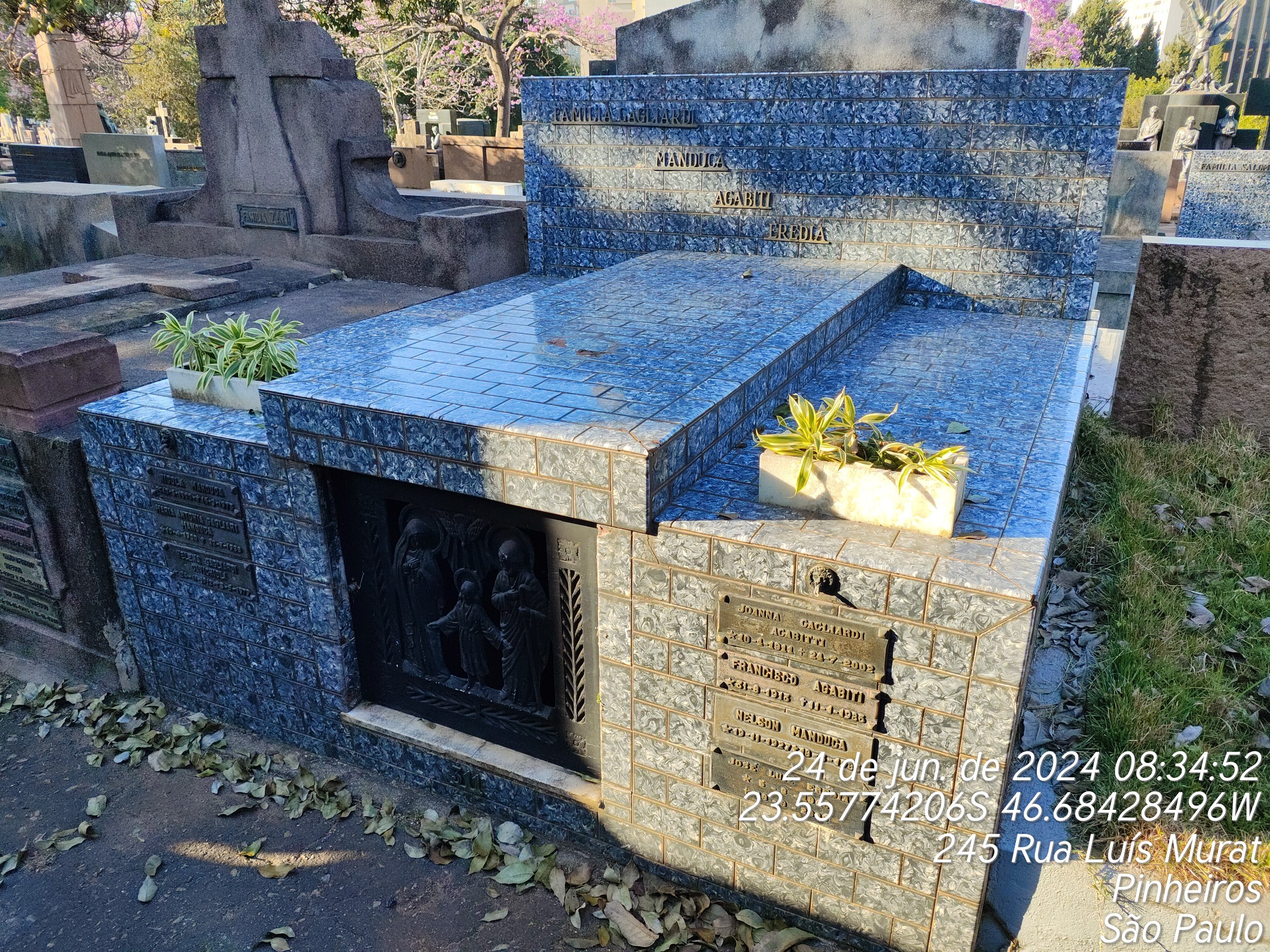 NATI MORTO-AIRTOM APARECIDO BARBOSA - 09/11/1988, JOANA GAGLIARDI AGABITTI - 23/07/2002, FRANCISCO AGAPITI - 12/01/1985, NELSOM MANDUCA - 19/03/1985, NATI MORTO - 15/02/1982, LUIZ GAGLIARDI - 20/10/1936, NICOLA MANDUCA - 15/09/1973, VICENTE GAGLARDE - 04/05/1989, HELENA GAGLIARDI CAVICHIOLI - 08/06/1979, MARIA ANTONIA GLAGLIARDI MANDUCA - 22/07/1988