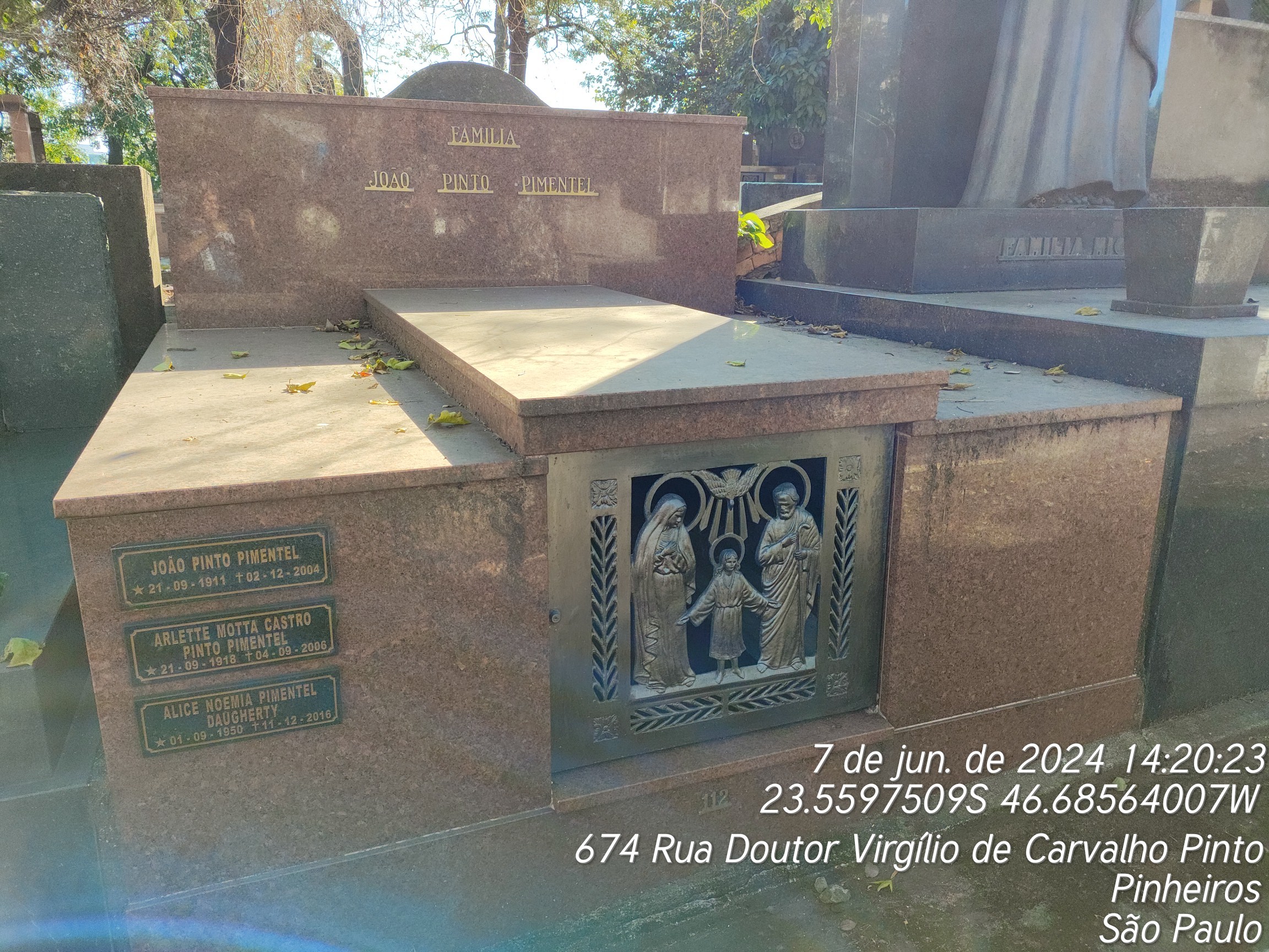 ARLETTE MOTTA CASTRO PINTO PIMENTEL - 04/09/2006, JOAO PINTO PIMENTEL - 02/12/2004, JOSE MENESES MENDONCA - 05/02/1952, EUGENIO MENDONCA - 18/03/1951, ETELVINA BOENE DE MENDONCA - 12/12/1941, MARIA DAS DORES OSORIO MENDOCA - 26/03/1967
