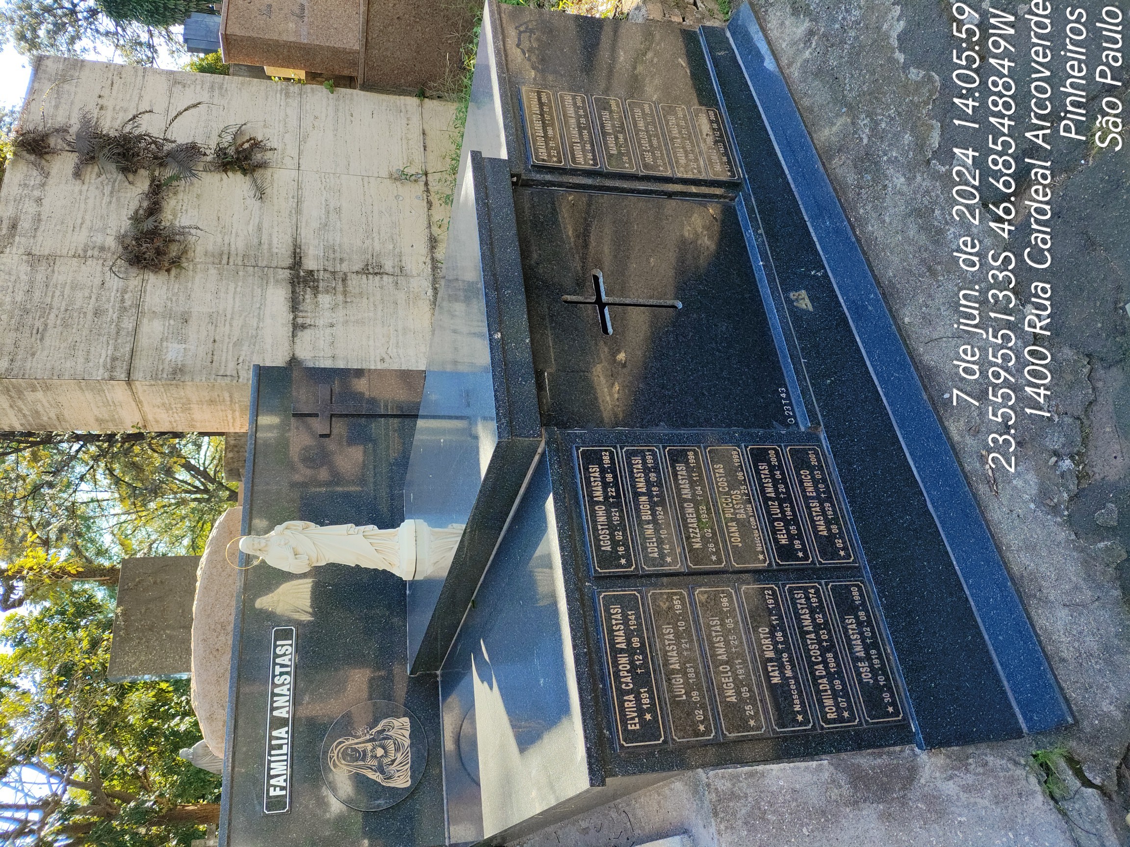 JANDIRA BIANCHINI ANASTASI - 28/04/2009, SALOMAO JOSE ABRAHAO - 12/08/2020, AGMARIO BARRETO ANDRADE - 17/01/2004, HELIO LUIZ ANASTASI - 20/04/2000, NAZZARENO ANASTASI - 05/11/1996, JOANA PUCCI COSTAS BASTOS - 25/06/1999, ADELINA BUGIN ANASTASI - 07/09/1991, ANASTASI ENRICO - 09/03/2001, MANOEL ANASTASI - 17/11/2006, JOSE CARLOS ANASTASI - 26/11/2006, NATI MORTO - 05/11/1972, ROMILDA DA COSTA ANASTASI - 03/02/1974, ELVIRA CAPONI ANASTACI - 11/09/1941, JOSE ANASTASI - 02/08/1980, ANGELO AMASTASI - 25/05/1961, AGOSTINO ANASTASI - 27/08/1982, LUIGI ANASTASI - 20/10/1951