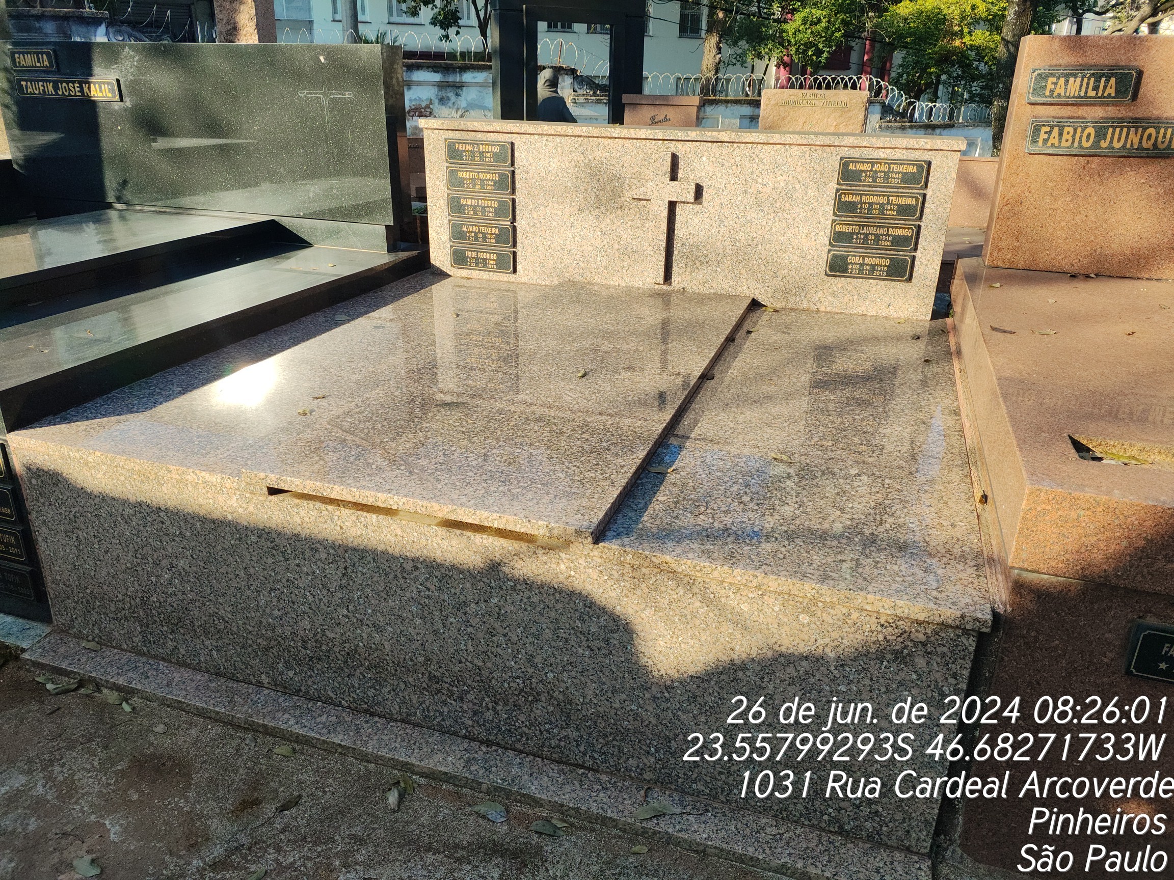 ALVARO JOAO TEXEIRA - 24/05/1991, ROBERTO LAUREANO RODRIGO - 10/11/1996, ROBERTO RODRIGO - 05/08/1959, ALVARO TEIXEIRA - 20/10/1968, PIERINA ZANGROSI RODRIGO - 17/05/1938, IRIRDE RODRIGO - 03/07/1975, RAMIRO RODRIGO - 20/12/1962, SARAH RODRIGO TEIXEIRA - 14/09/1994, CORA RODRIGO - 23/11/2013