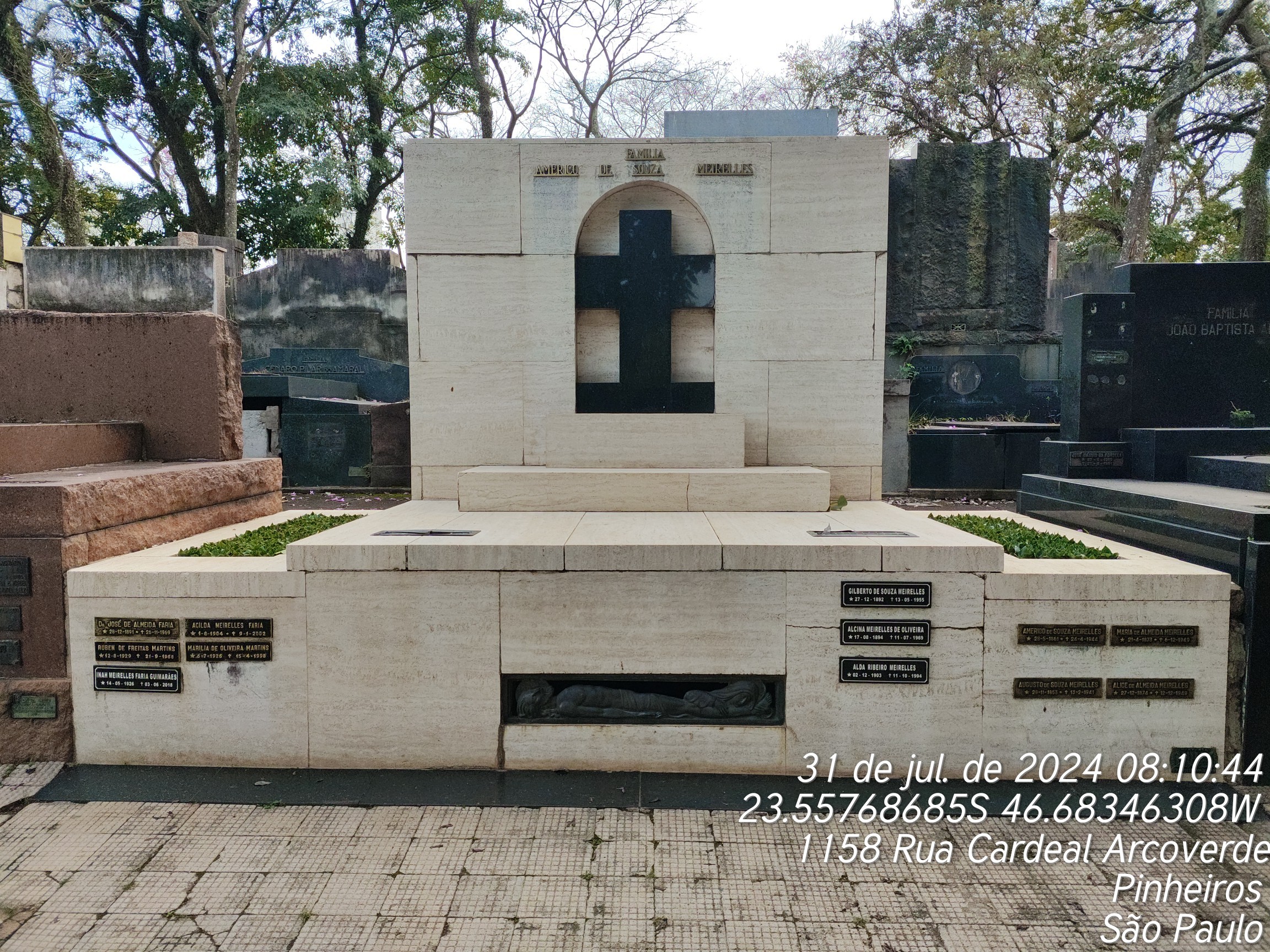 ALDA RIBEIRO MEIRELLES - 11/10/1994, INAH MEIRELLES FARIA GUIMARAES - 03/06/2018, MARIA DE ALMEIDA MEIRELLES - 06/12/1949, ALICE DE ALMEIDA MEIRELLES - 12/12/1949, ACILDA MEIRELLES FARIAS - 09/01/2002, ALCINA MEIRELLES DE OLIVEIRA - 11/07/1969, GILBERTO DE SOUZA MEIRELLES - 13/05/1955, AMERICO SOUZA MEIRELLES - 24/04/1944, DARIO LIVIO CERCHI - 04/06/2022, JOSE DE ALMEIDA FARIA - 25/11/1969
