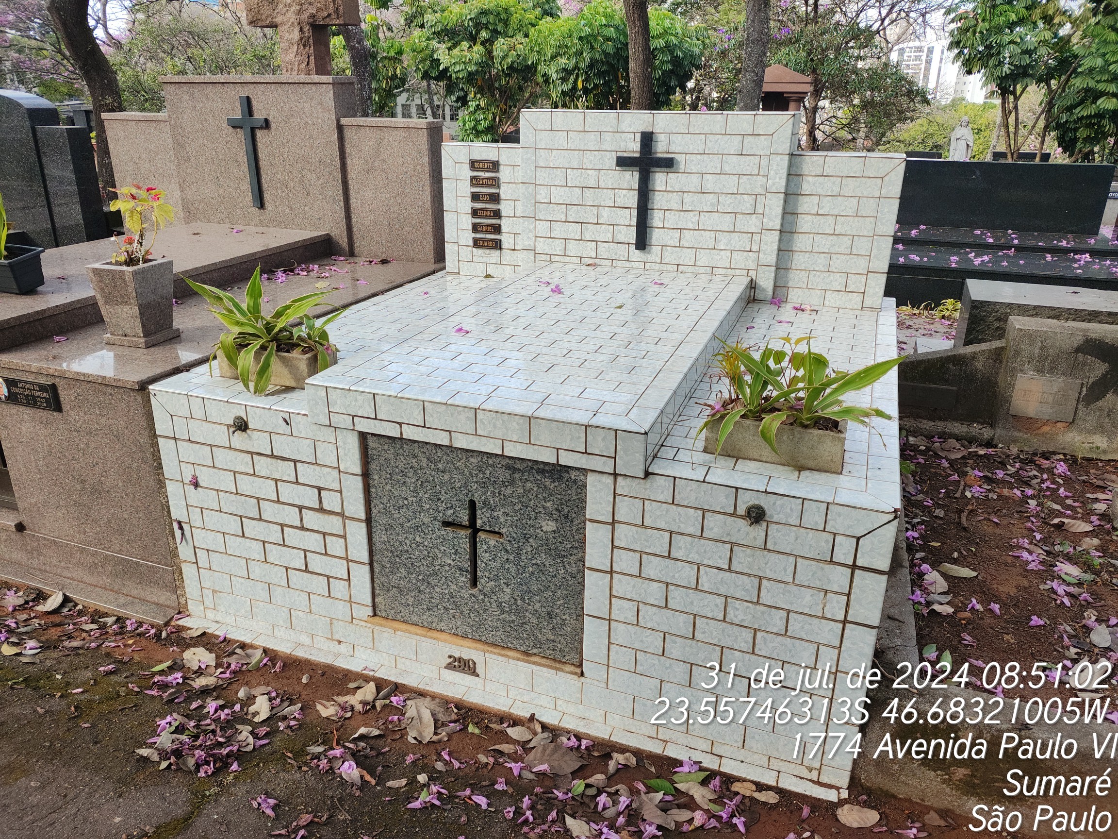 EDUARDO MARCONDES MACHADO - 24/08/2005, GABRIEL MARCONDES MACHADO - 20/08/1992, ELZA RAMOS MARCONDES MACHADO - 07/04/1991, NATI MORTO - 04/02/1985, ROBERTO MARCONDES MACHADO - 05/02/1945, PEDRO DE ALCANTARA MARCONDES MACHADO - 18/05/1979