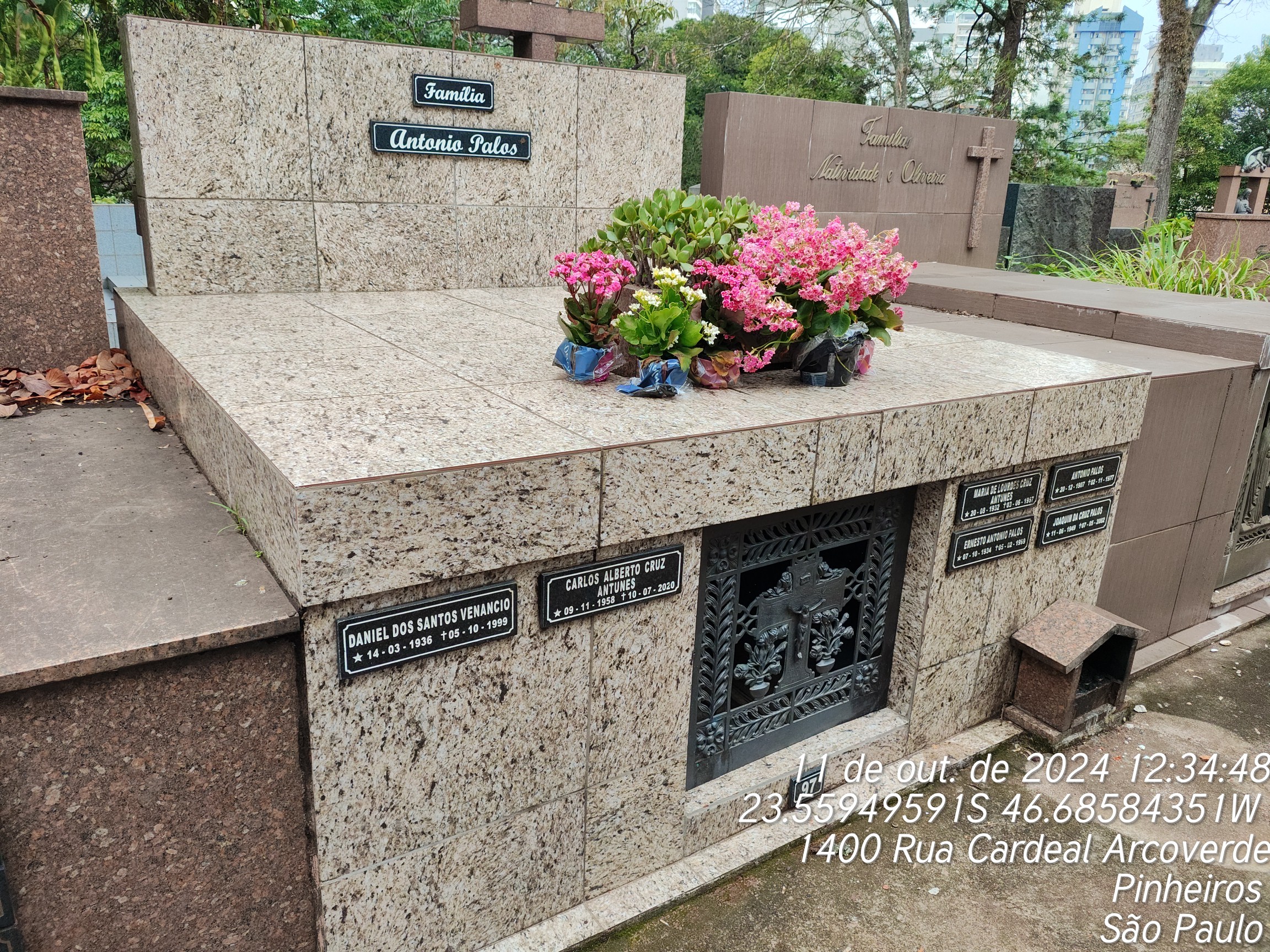 CARLOS ALBERTO CRUZ ANTUNES - 10/07/2020, JOAQUIM DA CRUZ PALOS - 07/05/2002, ERNESTO ANTONIO PALOS - 05/02/1999, RUBENS LAROCCA - 16/05/1992, MARIA LOURDES DA CRUZ ANTUNES - 02/06/1967, MARCELO DA CRUZ VENANCIO - 11/06/1970, NATI MORTO - 06/09/1978, MANOEL AGOSTINHO - 04/07/1985, LAURA DE JESUS AGOSTINHO - 31/08/1980, DANIEL DOS SANTOS VENANCIO - 05/10/1999, TRANQUEDO DO NASCIMENTO LAGAREIRO - 29/06/1959, ISAURA NOGUEIRA - 26/09/1975, ANTONIO PALOS - 02/11/1977