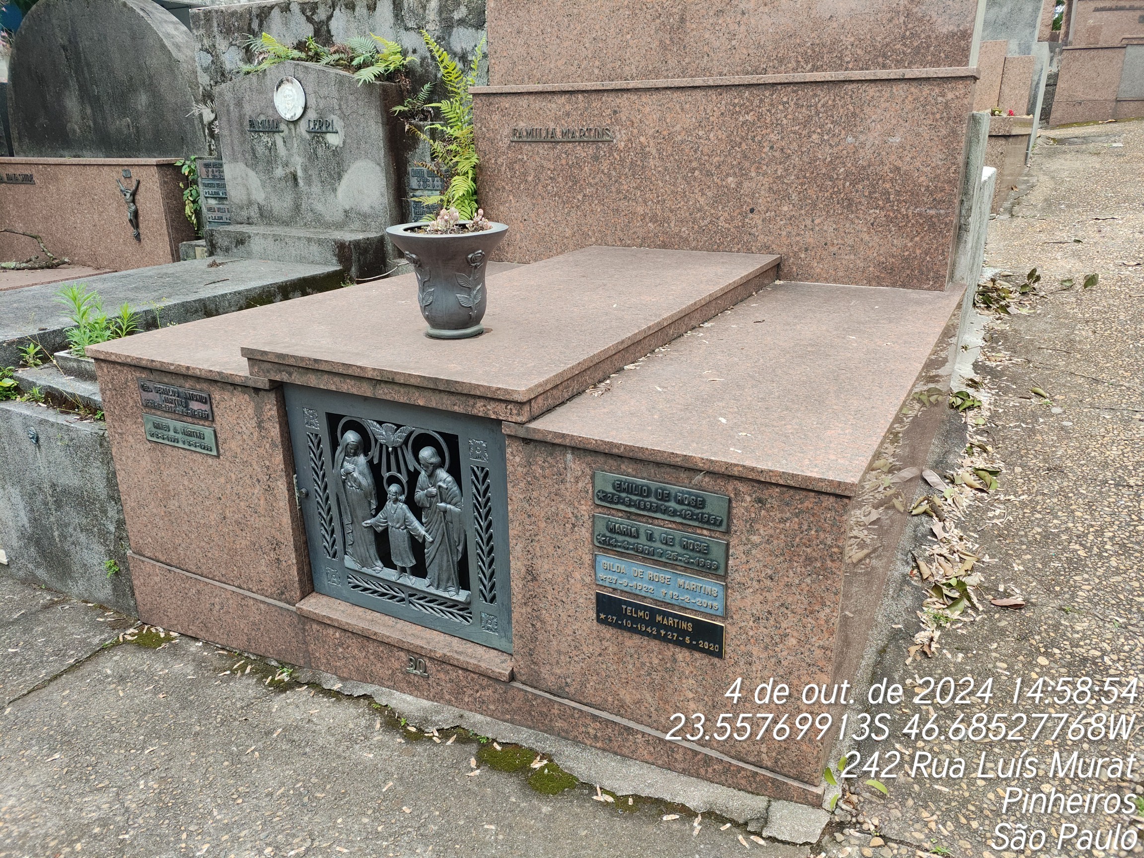 TELMO MARTINS - 27/05/2020, RITA BATISTA DO NASCIMENTO - 17/09/1983, MARIA TOGUINI DROSE - 26/03/1989, EMILIO D ROSE - 02/12/1967, IRINEU ANTONIO MARTINS - 02/03/1968, GERALDO ANTONIO MARTINS - 05/11/1987