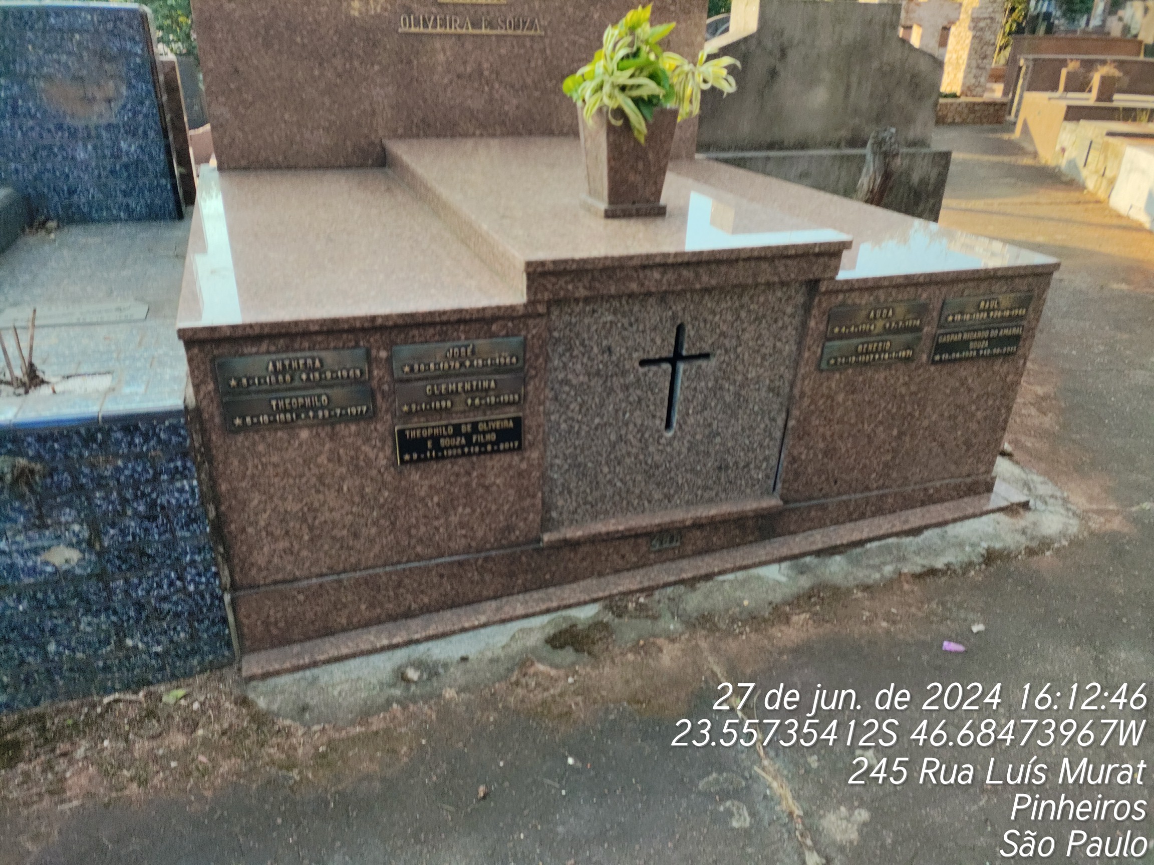 JOSE ELOY DE OLIVEIRA - 13/01/1964, CLEMENTINA DANIELS DE SOUZA - 06/12/1985, GENESIO DE OLIVEIRA E SOUZA - 13/01/1971, ANTHERA FERRAZ DE OLIVEIRA - 13/02/1963, TEOPHILA DE OLIVEIRA E SOUZA - 22/07/1977, RAUL FERRAZ DE OLIVEIRA - 03/11/1968, AUDA DO AMARAL SOUZA - 07/07/1974