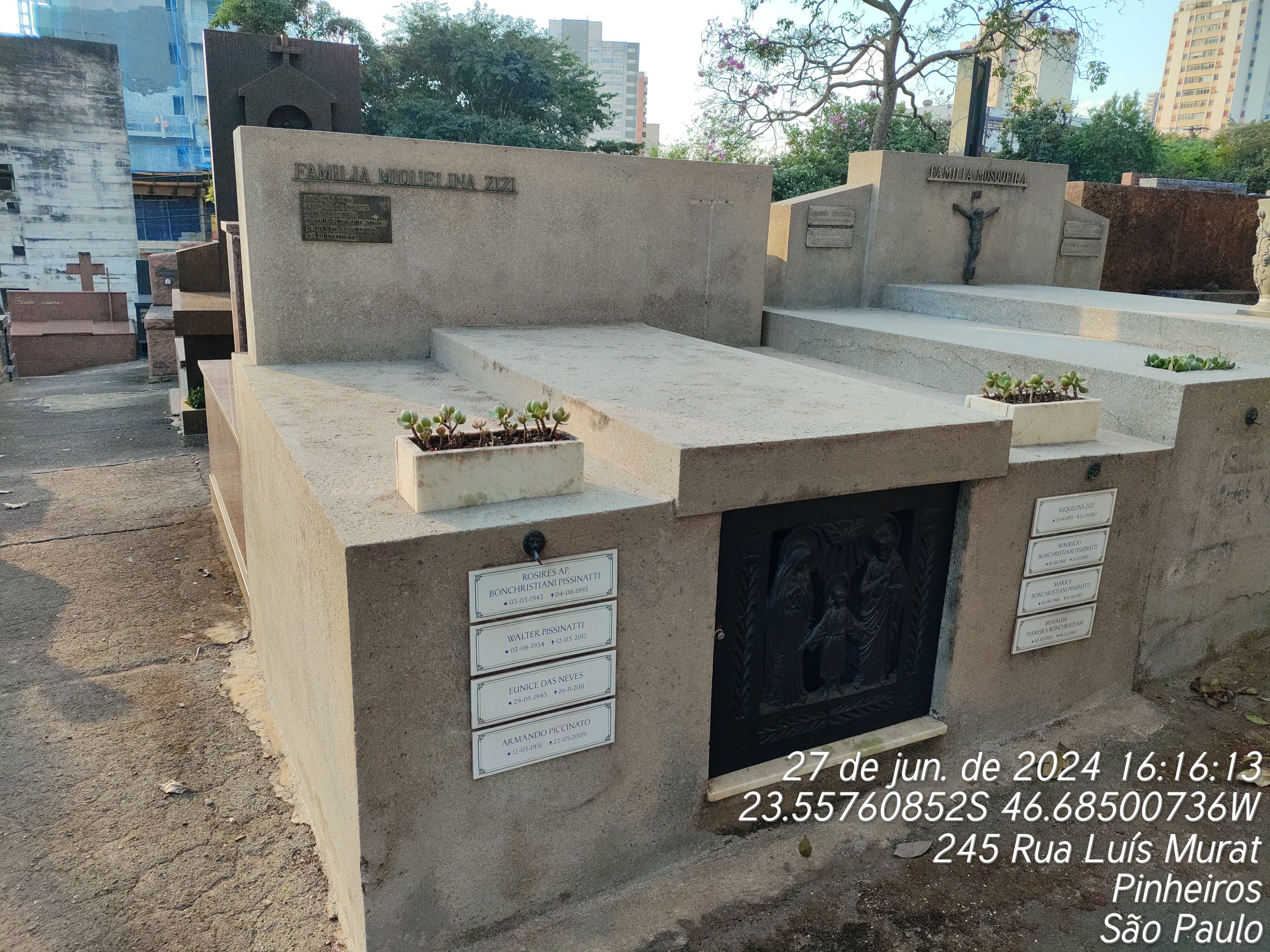 MAFALDA FERREIRA BONCHRISTIANI - 06/12/2003, ROSIRES APARECIDA BONCHRISTIANI - 04/08/1993, MAURICIO BONCHRISTIANI PISSINATTI - 31/07/1993, ARMANDO PICCINATO - 22/05/2009, MICHELINA ZIZZI - 26/09/1967