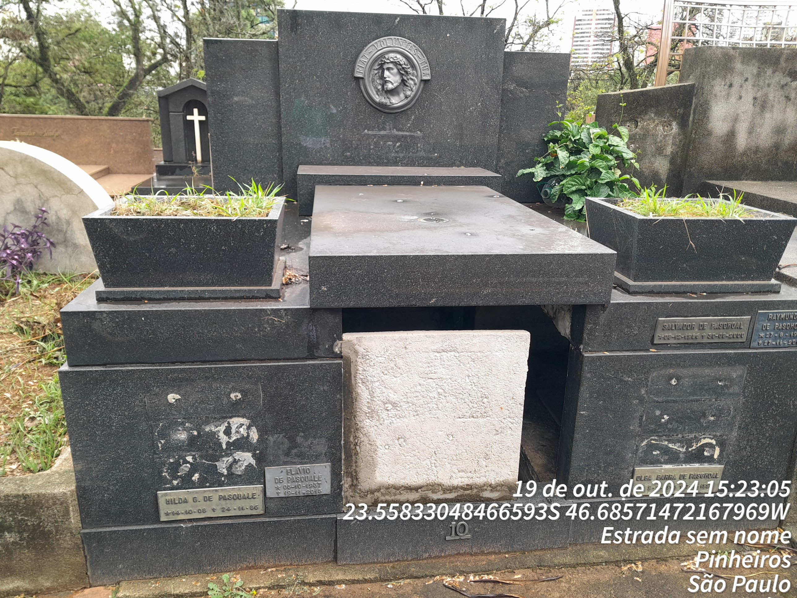 SALVADOR DE PASCHOAL - 30/08/2000, OLGA BARRA PASCHOAL - 07/07/1990, ROBERTO DE PASQUALI - 08/05/1990, MARIA JOSE SANTELMO PASCHOAL - 16/04/1982, HILDA GOMES DE PASQUALI - 24/11/1985, FRANCISCO ANTONIO PASCHOALE - 16/02/1945, NATI MORTO - 14/01/1963, FILOMENA SATRIANO - 21/08/1952, MARTINS PASCHOAL - 09/01/1980, ANTONIO DE PASQUALI - 09/09/1974