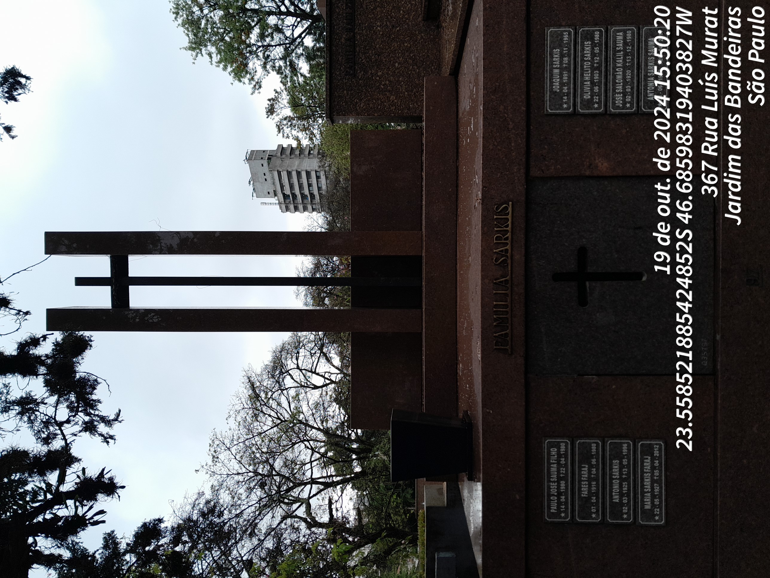 ANTONIO SARKIS - 14/05/1996, JOAQUIM SARKIS - 08/11/1965, PAULO JOSE SAUMA FILHO - 22/04/1980, OLIVIA HELITO SARKIS - 12/05/1980, FARES FARAJ - 04/06/1980, JOSE SALOMAO KALIL SAUMA - 13/12/1980, TERESA JOSE BOLLERI - 03/10/1945