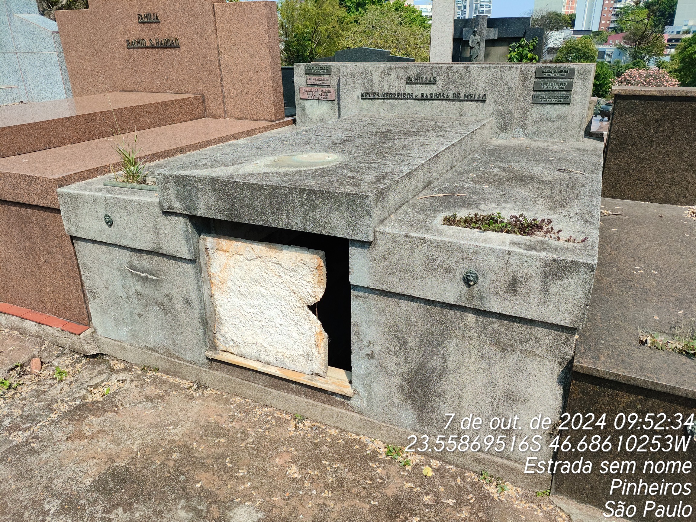 GERALDO BARBOSA DE MELLO - 23/10/1995, MARIA DO CARMO NEGREIROS DE MELLO - 28/10/1981, MARIA NEVES NEGREIROS - 14/11/1981, PULCINA AUGUSTO NEGREIROS - 18/03/1955, LASARO DE CAMPOS NEGREIROS - 12/04/1953, MARIA JOSE NEVES - 26/10/1950