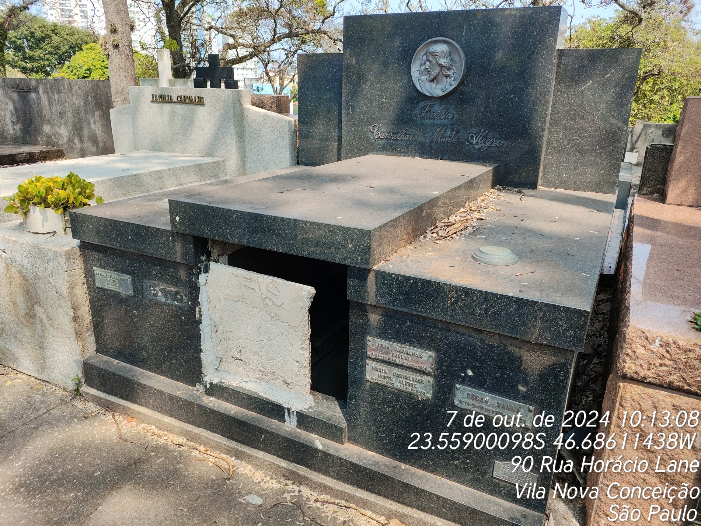 TARCISIO MACHADO CARVALHAES - 27/02/1993, RUI DE LIMA CARVALHAES - 29/02/1996, CELUTA MONTE ALEGRE SANNO - 09/07/1996, AUREA MONTE ALEGRE CARVALHAES - 14/11/1988, RITA DE CASSIA MONTE ALEGRE CARVALHAES - 19/08/1991, ARISTIDES STOCHLER CARVALHAES - 08/09/1960, ARISTIDES MONTE ALEGRE - 16/09/1970, JULIA CARVALHAES COELHO - 01/11/1956, MARIA CARVALHAES MONTE ALEGRE - 14/07/1963, OSCAR SANNA - 23/10/1971
